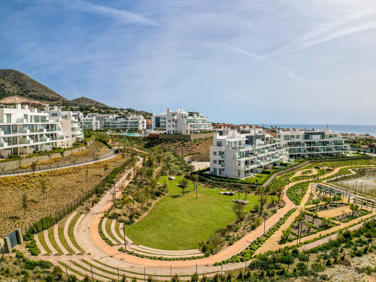 Higuerón West is an innovative residential project on the hillside overlooking Fuengirola, set within a unique and privileged location. Spanning 500,000 m², the development offers a wealth of green spaces, walking, running and cycling trails, children’s play areas, a pet park, organic gardens, shuttle service to the Beach Club, and stations for bicycles and electric cars. A co-working space is also included, designed to encourage networking and creativity.