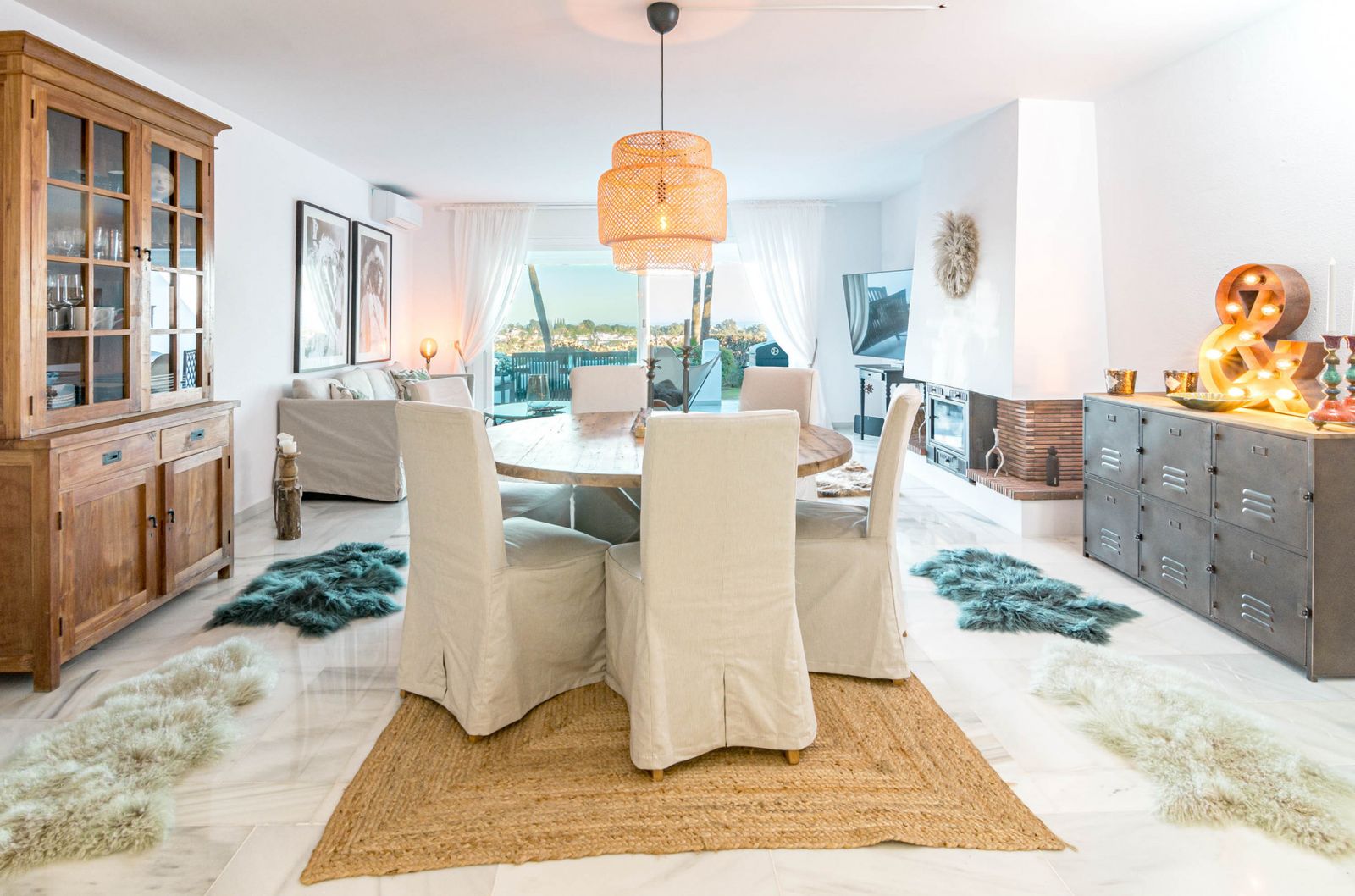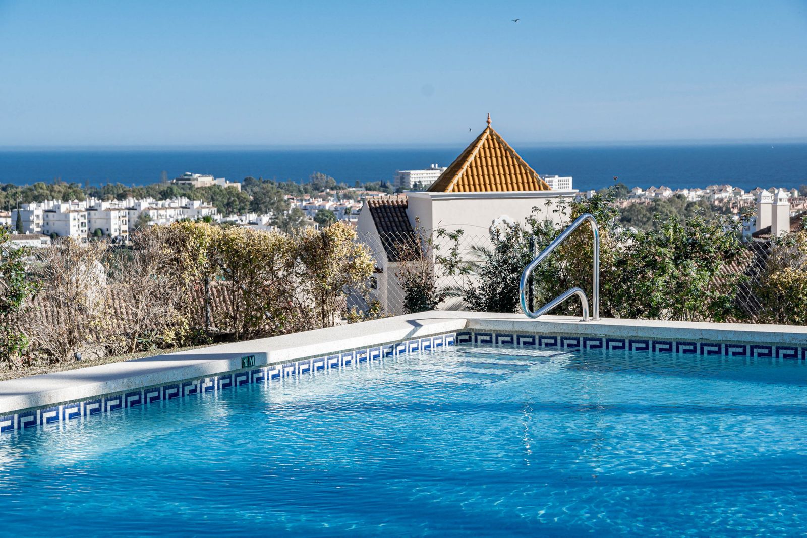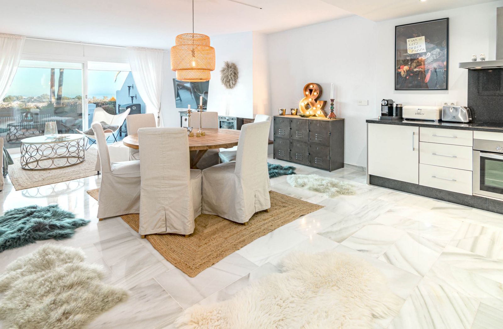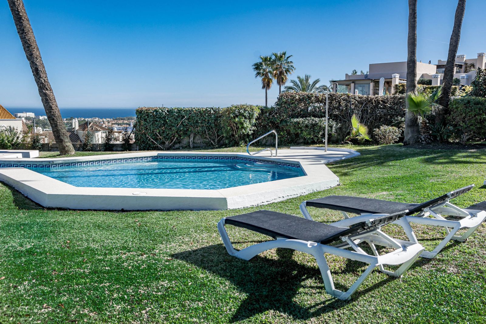 Nestled in a sought-after and well-maintained urbanization in Los Altos del Paraíso, this beautifully presented 2-bedroom, 2-bathroom townhouse offers the perfect blend of comfort, style, and Mediterranean charm. With a total living area of 81 m² and an impressive 40 m² of outdoor terrace space, this home is spread across two floors and is designed to maximize natural light, scenic views, and indoor-outdoor living. The ground floor features a spacious open-plan living and dining area with a cozy fireplace, a fully equipped kitchen, and direct access to a large private terrace—ideal for al fresco dining and lounging. From here, step directly into the pool area, creating a seamless resort-style experience right from your doorstep. Upstairs, you'll find two well-sized bedrooms, each with their own bathroom, and the second terrace – a private balcony offering panoramic sea views, La Concha mountain views, and a tranquil pool view. This charming property includes air conditioning for both hot and cold seasons, a private parking space, and comes fully furnished with high-quality furniture and fixtures. Residents also enjoy access to a communal swimming pool within a beautifully maintained complex. The location is superb, just moments away from essential amenities, world-class golf courses, and everything the vibrant Benahavís area has to offer. Whether you're looking for a permanent residence, holiday getaway, or investment property, this townhouse offers unbeatable lifestyle and value in one of the Costa del Sol’s most desirable locations.
