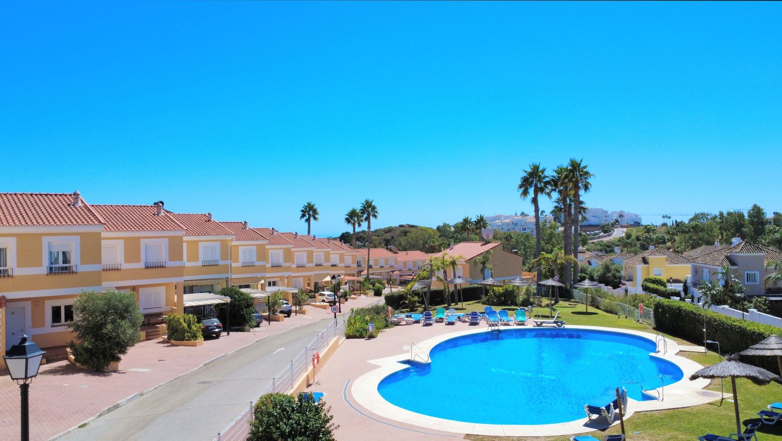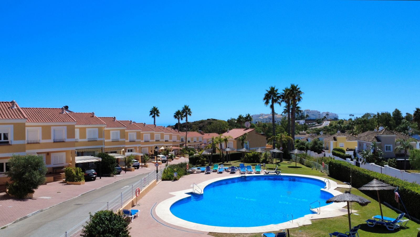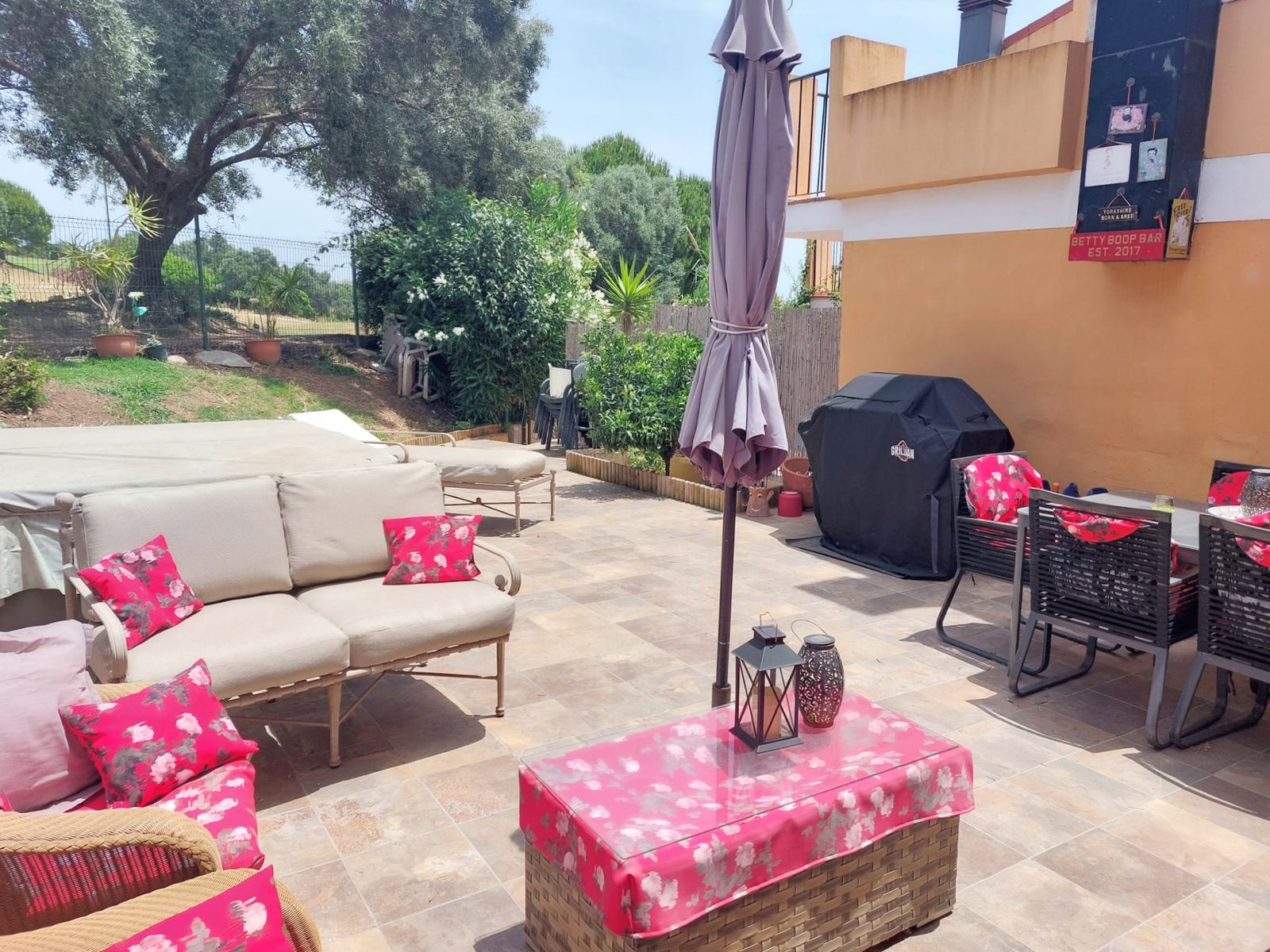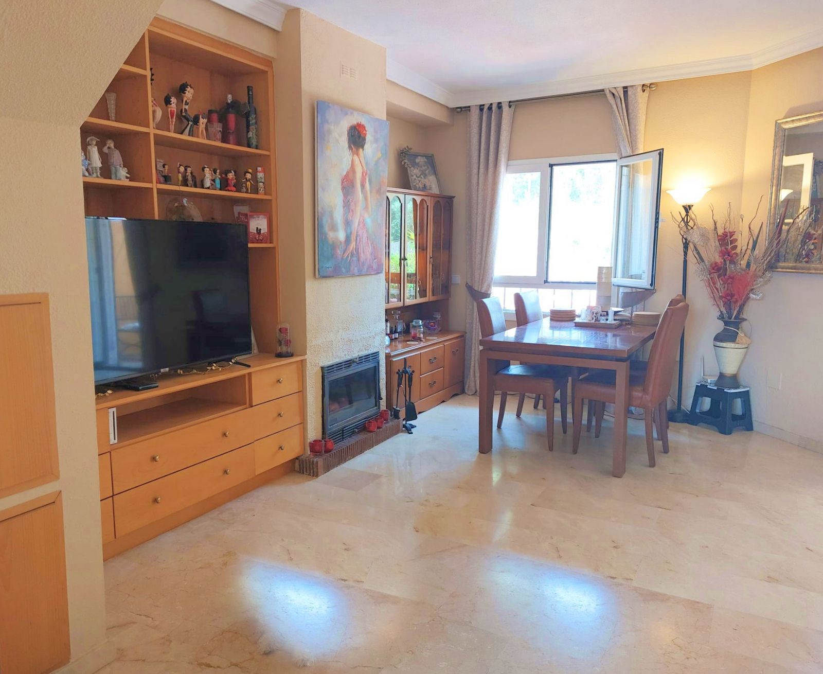 Exclusive Golf Front Townhouse – La Duquesa Located in the attractive area of La Duquesa, between the towns of Estepona and Sotogrande, just a 10-minute drive to each, and only 5 minutes from sandy beaches with beach bars, a promenade, and its marina, this townhouse offers the perfect combination of tranquility, comfort, and Mediterranean lifestyle. With direct views of La Duquesa Golf Course and the sea, it is ideal for those who want to enjoy golf, nature, and proximity to the coast. The ground floor features a spacious living-dining room with fireplace, a fully equipped modern kitchen, and a rear terrace perfect for outdoor living. Upstairs, the master suite has a private balcony with stunning views, accompanied by two double bedrooms with built-in wardrobes and air conditioning. The gated complex offers a communal swimming pool, sun terrace, gardens, and barbecue area, creating the perfect setting to relax and enjoy the Mediterranean lifestyle with family. An elegant and welcoming home, ready to move in. We highly recommend a visit to fully appreciate its qualities and privileged location.