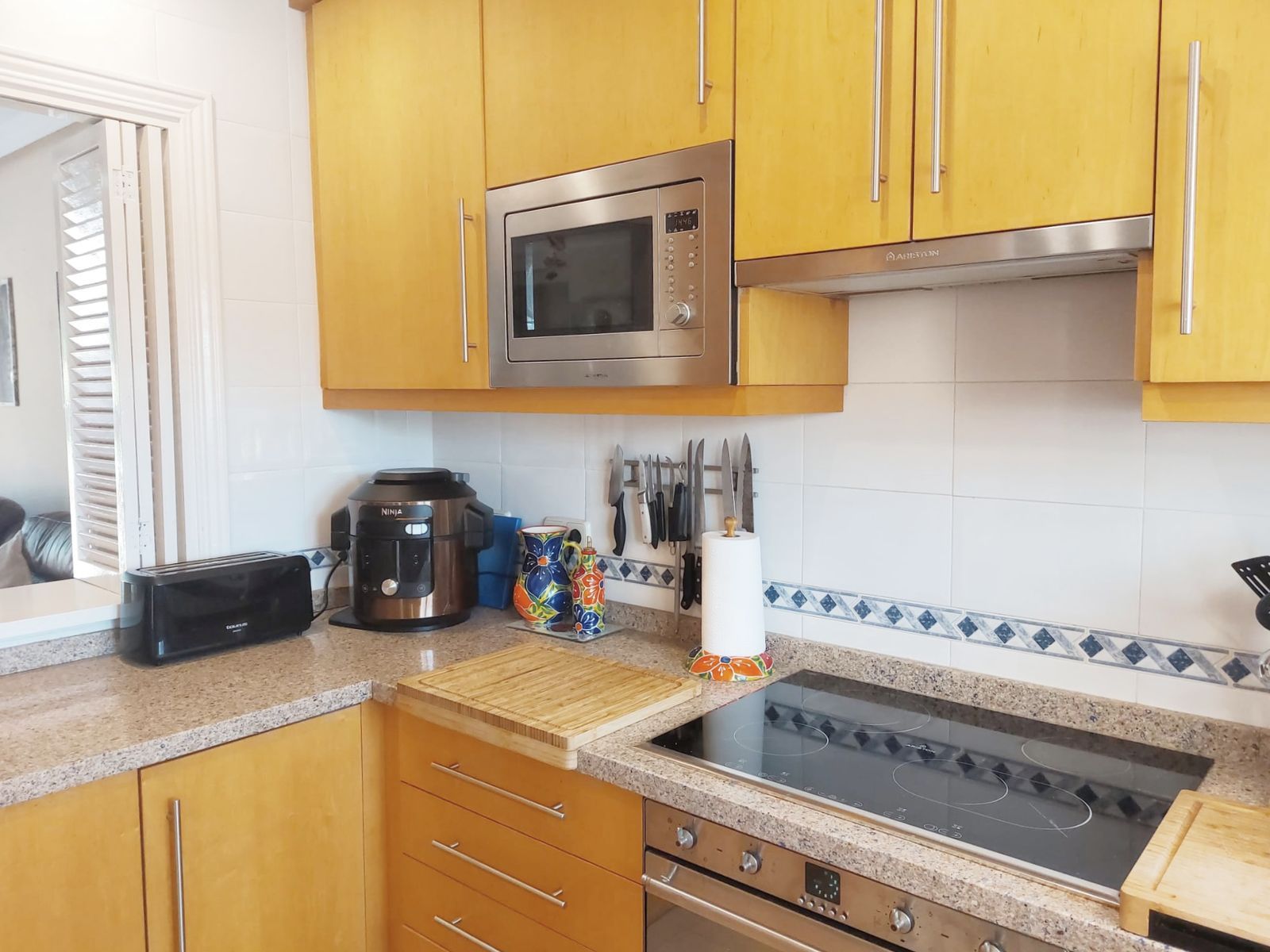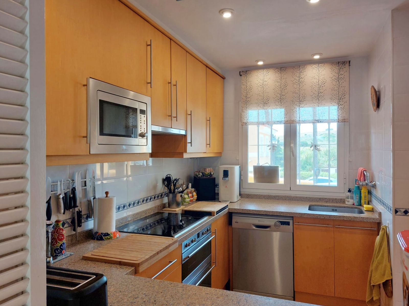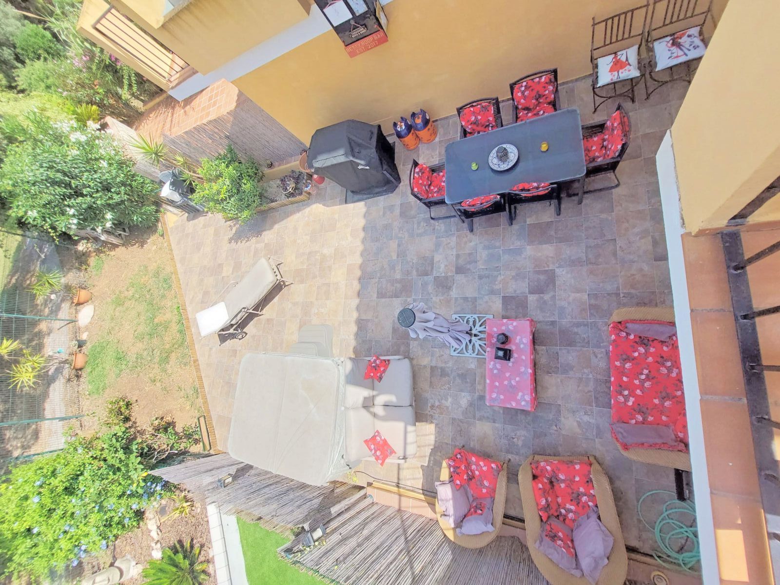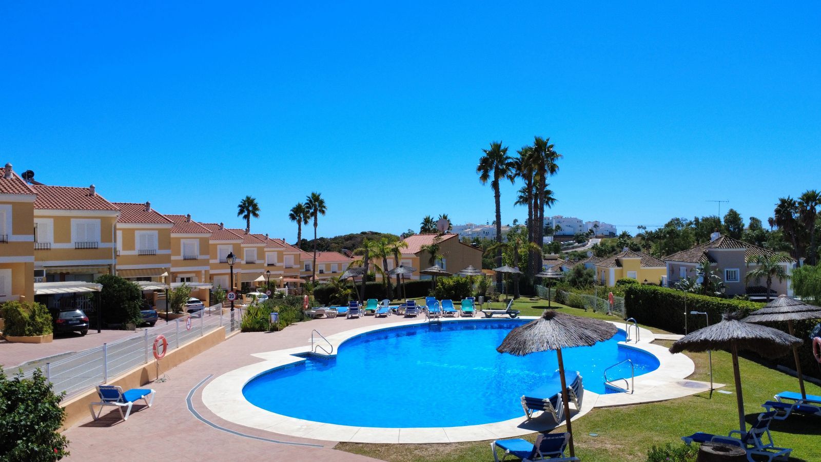 Exclusive Golf Front Townhouse – La Duquesa Located in the attractive area of La Duquesa, between the towns of Estepona and Sotogrande, just a 10-minute drive to each, and only 5 minutes from sandy beaches with beach bars, a promenade, and its marina, this townhouse offers the perfect combination of tranquility, comfort, and Mediterranean lifestyle. With direct views of La Duquesa Golf Course and the sea, it is ideal for those who want to enjoy golf, nature, and proximity to the coast. The ground floor features a spacious living-dining room with fireplace, a fully equipped modern kitchen, and a rear terrace perfect for outdoor living. Upstairs, the master suite has a private balcony with stunning views, accompanied by two double bedrooms with built-in wardrobes and air conditioning. The gated complex offers a communal swimming pool, sun terrace, gardens, and barbecue area, creating the perfect setting to relax and enjoy the Mediterranean lifestyle with family. An elegant and welcoming home, ready to move in. We highly recommend a visit to fully appreciate its qualities and privileged location.