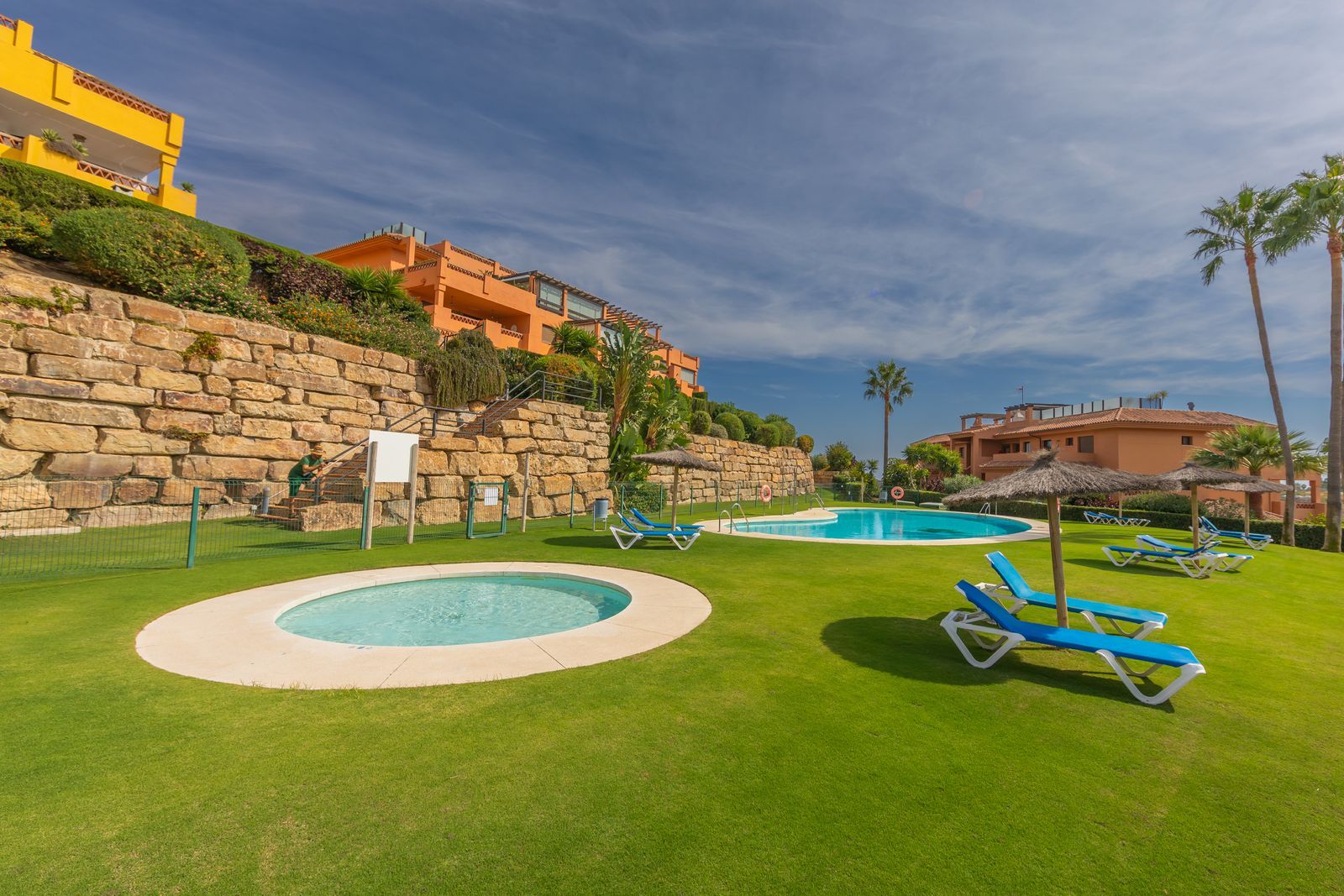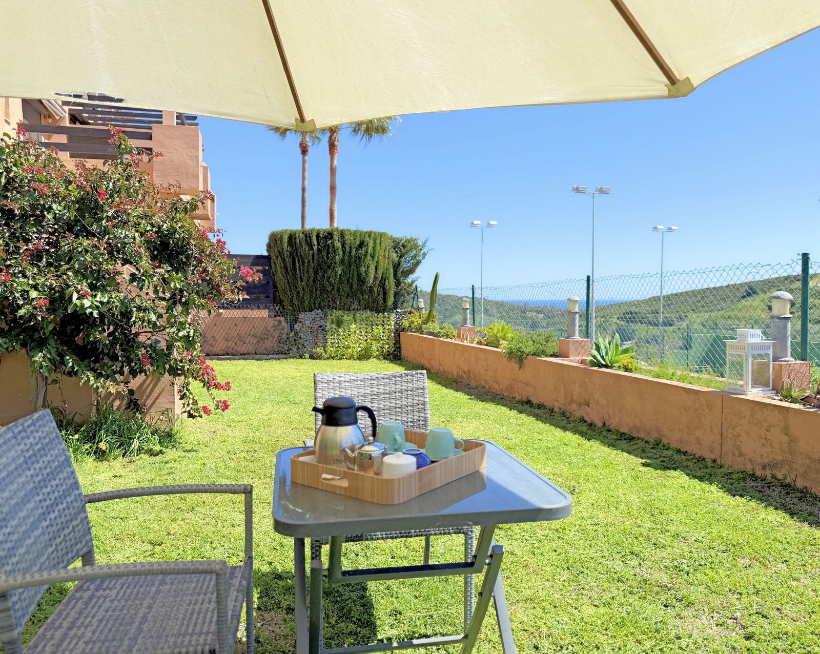 Exclusive Apartment with Private Garden, Sea Views, and Independent Apartment, Casares Costa This magnificent ground-floor apartment stands out for its spacious private garden and excellent southwest orientation, ensuring exceptional brightness throughout the day and breathtaking sunsets. Located in a privileged setting on the frontline of a golf course, it offers stunning views of the mountains and the sea. It is situated in Casares Costa, within the exclusive Doña Julia Golf area, a rapidly developing zone featuring luxury developments and a Hilton hotel under construction. Its location is unbeatable, positioned between Estepona and the charming Puerto de la Duquesa, both just a five-minute drive away, as well as the beautiful fine-sand beaches and the promenade that connects the entire Costa del Sol. This area offers a wide variety of restaurants, beach bars, and leisure zones. The property, all on one level, is spacious, bright, and extremely comfortable. It features four bedrooms and two bathrooms, a large living room with direct access to the terrace and private garden, from where you can enjoy spectacular views of the golf course and the sea. Thanks to its elevated position, the apartment offers a sense of privacy and tranquility, allowing for a peaceful living experience surrounded by nature. As an added value, the property includes a renovated basement that has been converted into an independent apartment with one bedroom, a bathroom, and a kitchen. This additional space offers multiple possibilities, whether as guest accommodation, a separate residence, or even a rental opportunity. Built with high-quality materials, the apartment comes with a fully equipped kitchen. It is part of a well-maintained community with landscaped areas and a communal swimming pool. Additionally, it offers a spacious private and secure parking space, providing extra convenience and security. The location is ideal for golf enthusiasts, with prestigious courses nearby, such as Finca Cortesín, which has hosted major tournaments like the 2023 Solheim Cup and the Volvo Masters. Supermarkets, hospitals, and essential services are just two kilometers away, ensuring daily convenience. This property is not only perfect as a primary or secondary residence but also represents an excellent investment opportunity, boasting high rental potential due to its strategic location, independent apartment, and outstanding features. If you are looking for a home on the Costa del Sol where tranquility, comfort, and breathtaking views come together perfectly, this apartment is a must-see!