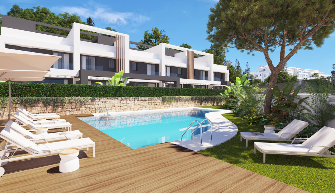 Nestled in the pine-scented hills of El Chaparral, Mijas, this contemporary collection of three-bedroom townhouses captures the essence of modern Mediterranean living. Surrounded by lush greenery and cooled by coastal breezes, the setting offers privacy, tranquillity and a seamless connection to natural light.