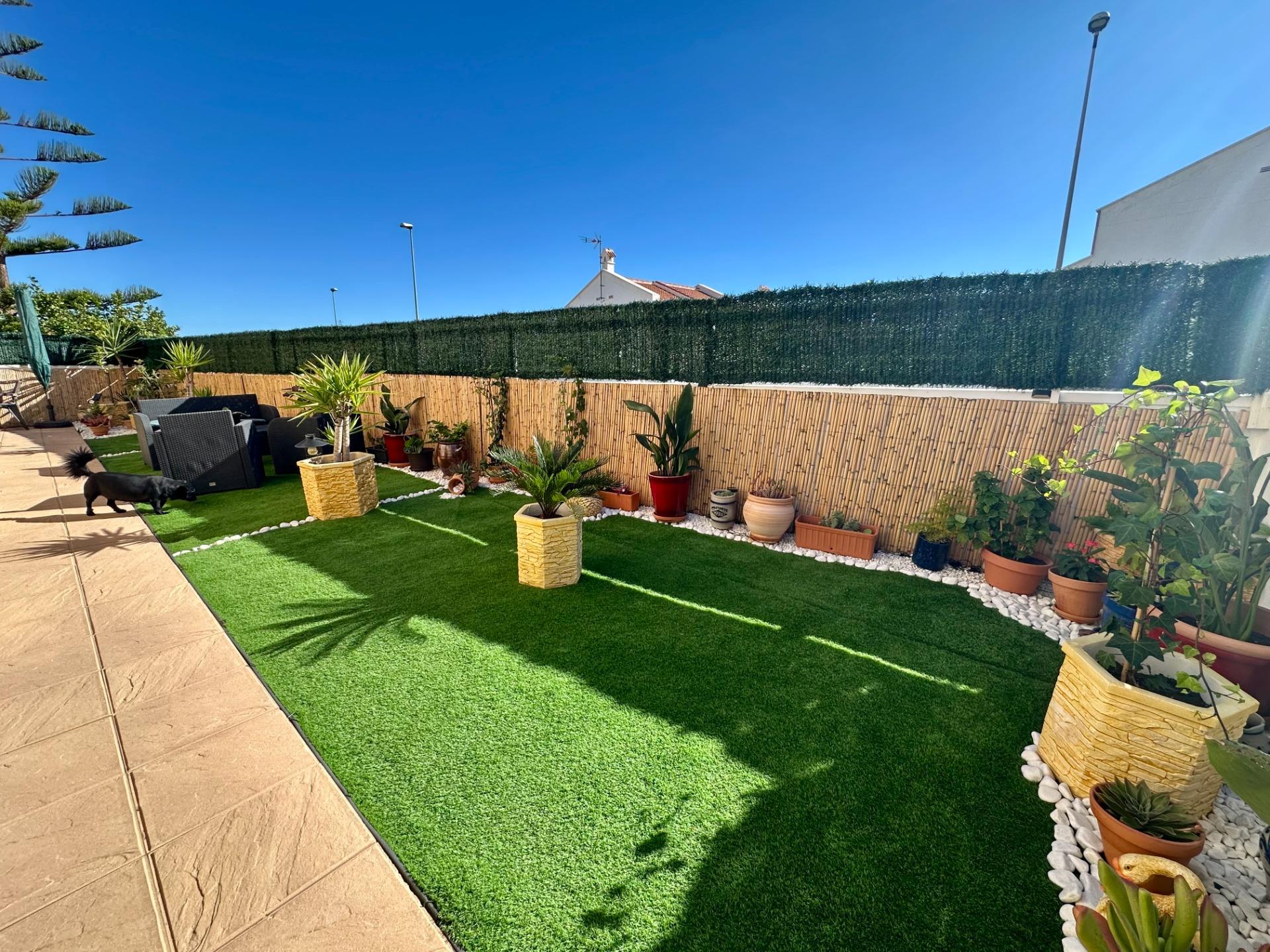 Townhouse with Basement & Solarium in San Miguel de Salinas~This well-presented four-bedroom townhouse is located in a gated community with communal pool in San Miguel de Salinas.~~The property offers a bright living room with access to a sunny terrace, a separate kitchen, one bedroom, and a bathroom on the ground floor. Upstairs you’ll find two additional bedrooms, one with a private terrace, plus a family bathroom.~~A private solarium provides open views and all-day sunshine, while the spacious basement has been converted into an extra living area with lounge, bedroom space, and a large storage room.~~Perfect for permanent living or holidays, this home combines space, comfort, and excellent location—just a short drive from Orihuela Costa beaches, golf courses, and local amenities.