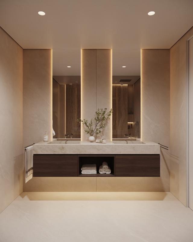The interior design has been developed by a distinguished studio, incorporating natural materials, elegant finishes, and smart layouts that enhance comfort and aesthetics.