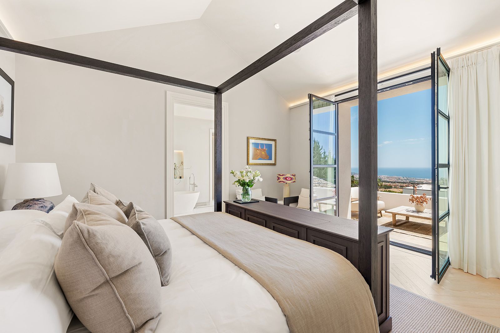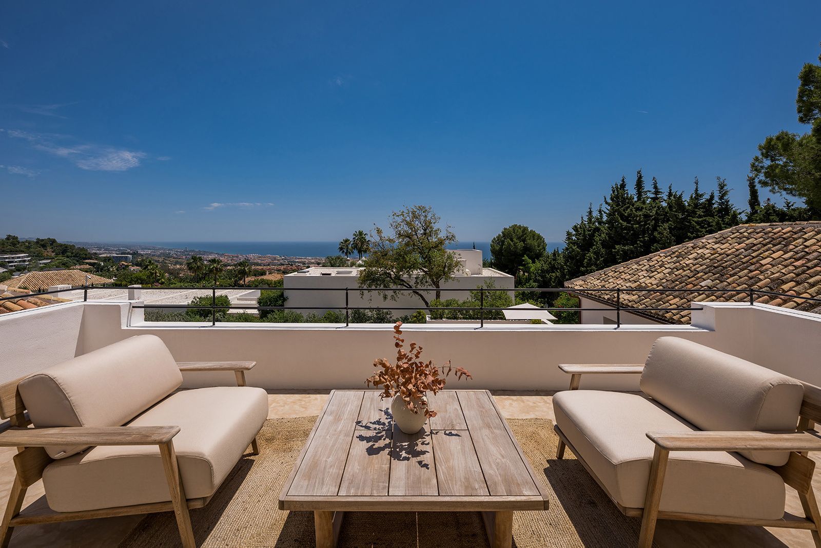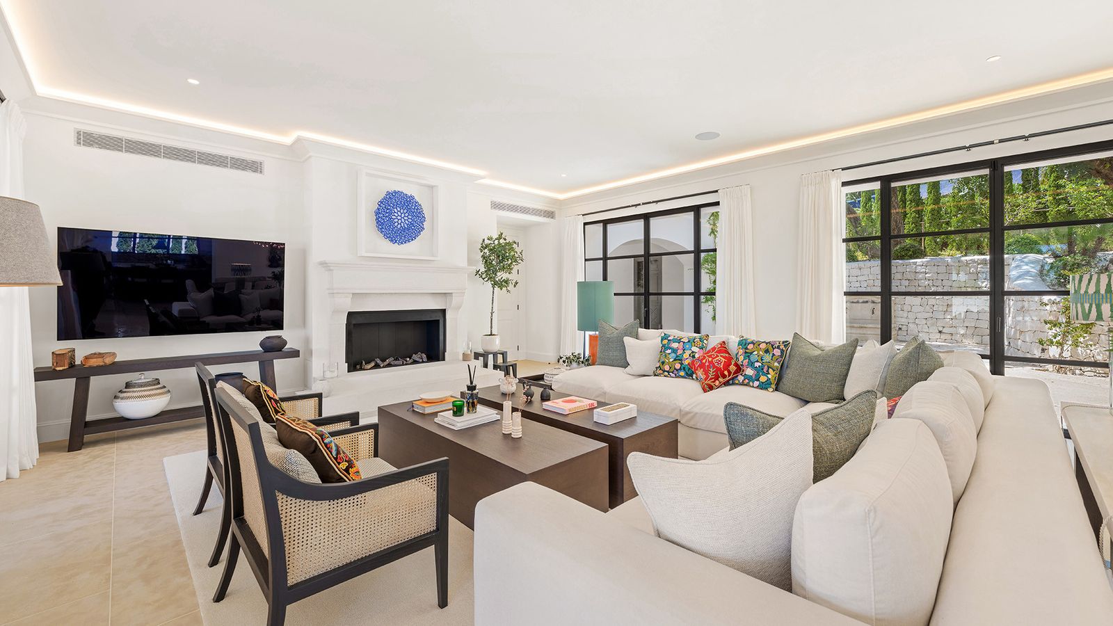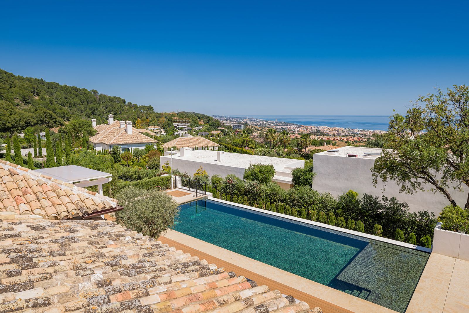 This exceptional villa is the epitome of ultra-luxury living, offering not only the highest standards of elegance and comfort but also unmatched security. Nestled in one of Marbella’s most prestigious locations—at the top of the Golden Mile in the exclusive Cascada de Camoján—it forms part of a newly developed, ultra-private double-gated community of just five residences. Designed to offer the perfect blend of sophistication, tranquility, and seclusion, this is a dream home for those who value an elevated lifestyle in Marbella. Enjoying an enviable setting, the villa provides an unparalleled living experience. It is just minutes from the world-renowned five-star hotels Puente Romano and Marbella Club, as well as the glamorous Puerto Banús. Residents benefit from proximity to luxury amenities, pristine beaches, international schools, and Marbella’s charming old town—all while enjoying complete privacy in an exclusive enclave. Elevated above the coast, the villa boasts breathtaking panoramic views of the Mediterranean Sea. The lush, beautifully landscaped plot is surrounded by mature Mediterranean gardens, highlighted by majestic olive trees. Expansive outdoor spaces include a stunning heated pool with jacuzzi, a stylish chill-out zone perfect for sunbathing, a fully-equipped outdoor gas kitchen, and a spacious, elegant terrace—ideal for entertaining guests or simply relaxing in a peaceful setting year-round. Inside, the villa features five luxurious en-suite bedrooms, six bathrooms and one guest bedroom in the second building. It was all designed with exquisite attention to detail by acclaimed interior architect Rina Rankova. Every space is enhanced by cutting-edge home automation and state-of-the-art security, including video entry, an advanced alarm system, and perimeter surveillance cameras. Built to the highest standards, the home includes a gourmet kitchen with Lacanche appliances, a haven for culinary enthusiasts. Additional features include a private gym, two cozy fireplaces, a cinema room, a games room, wet and dry sauna, and a generous space easily adaptable into a home office or library. This villa is truly a sanctuary where refined living meets modern convenience in one of Marbella’s most coveted addresses.
