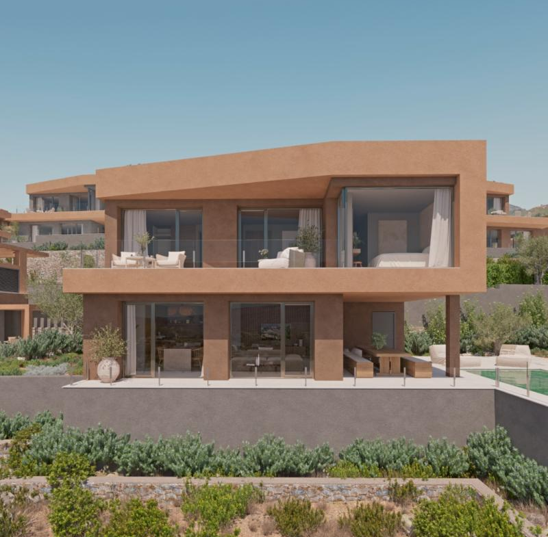 Each home boasts 3 bedrooms on the upper floor, while the ground floor houses the kitchen and living-dining room, which extend to captivating outdoor spaces. The Mediterranean climate is fully embraced, providing a porch with an external dining area, a spacious terrace, swimming pool, and gardens embracing the residence with native nature all year round.