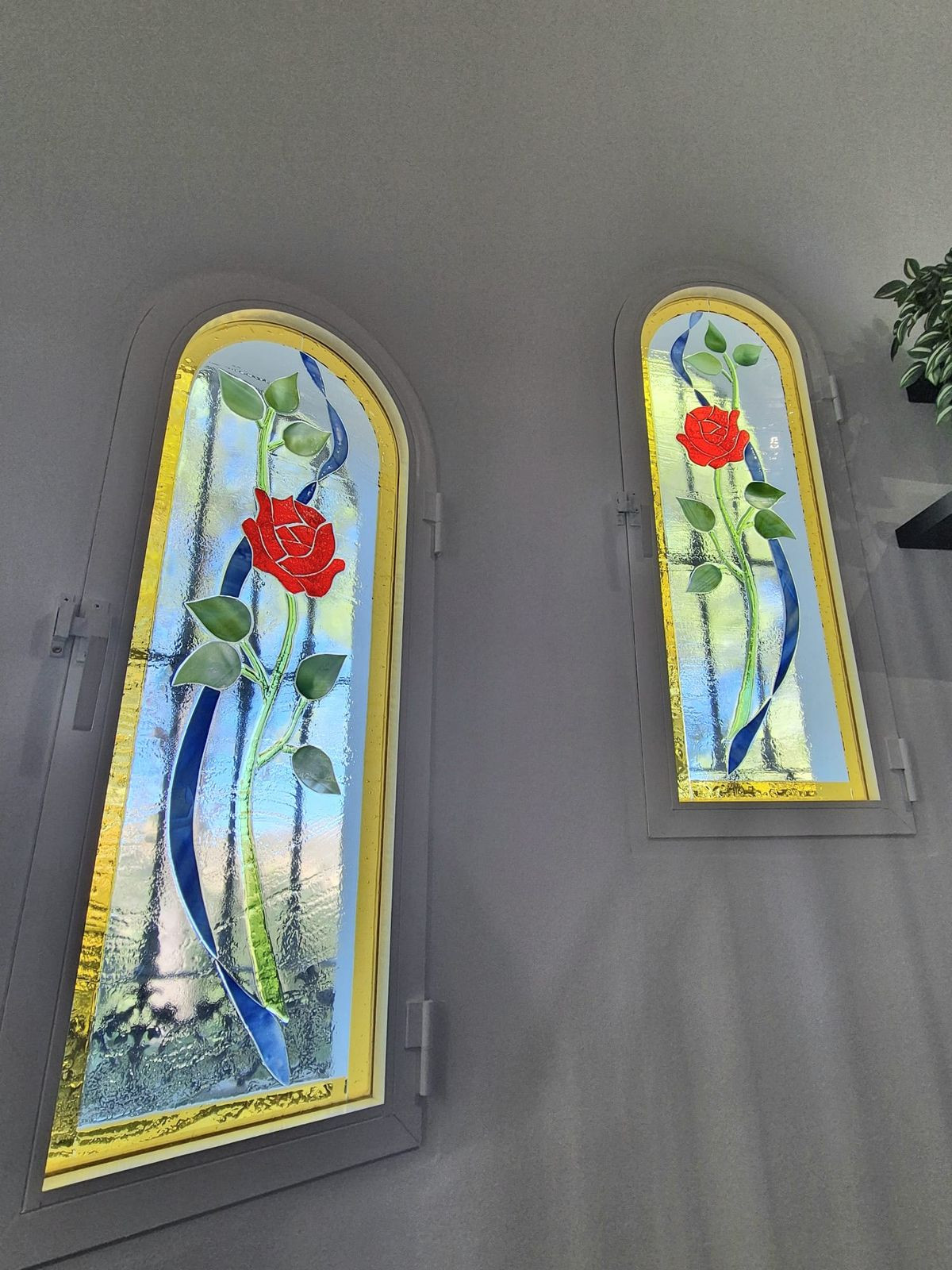 Curved staircase to upper floor. To the right of the stairs is the study/bedroom/office. Further along the landing which has A/C unit is the family bathroom with toilet, bidet, sink in housing unit with storage and bath with shower, radiator for central heating, tilt and turn window and storage cupboard.