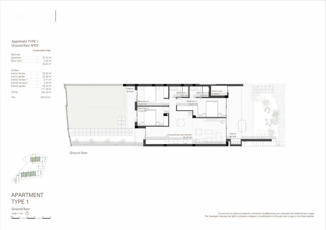 The ground floor residences offer generous interior spaces with three bedrooms and two bathrooms, plus a front terrace and a private garden with direct access to the communal areas. As for the penthouses, they stand out with their spectacular private solarium, the perfect spot to relax in the winter sun or enjoy al fresco dining during warm summer nights.