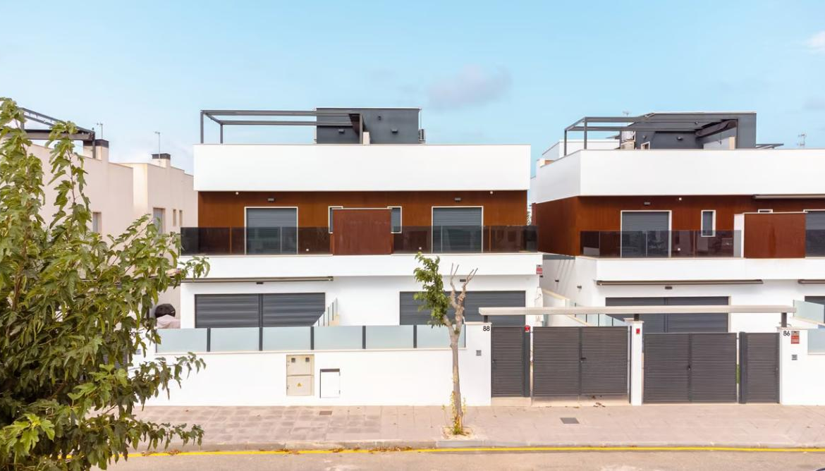 A few meters from the Alicante region, in the city of Pilar de la Horadada, are two modern semi-detached homes ready for sale. With a total of 116 square meters built, these properties are distributed over two floors and feature a bright rooftop solarium.
