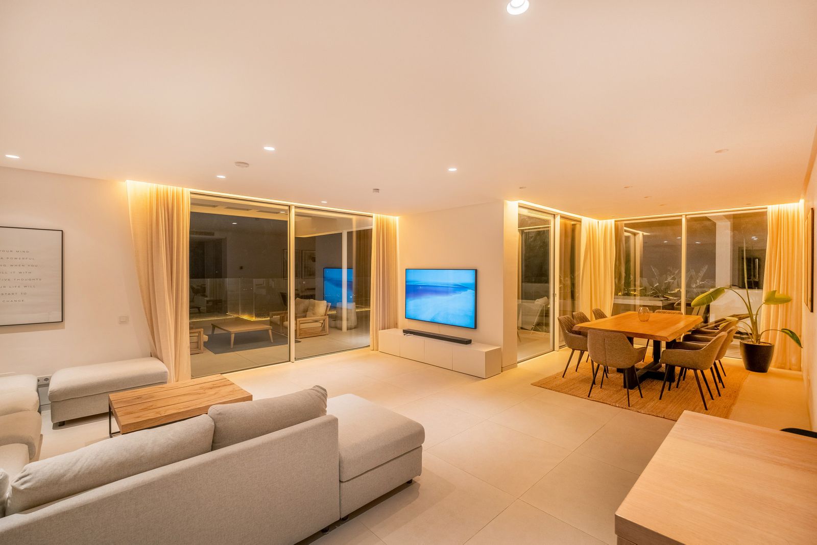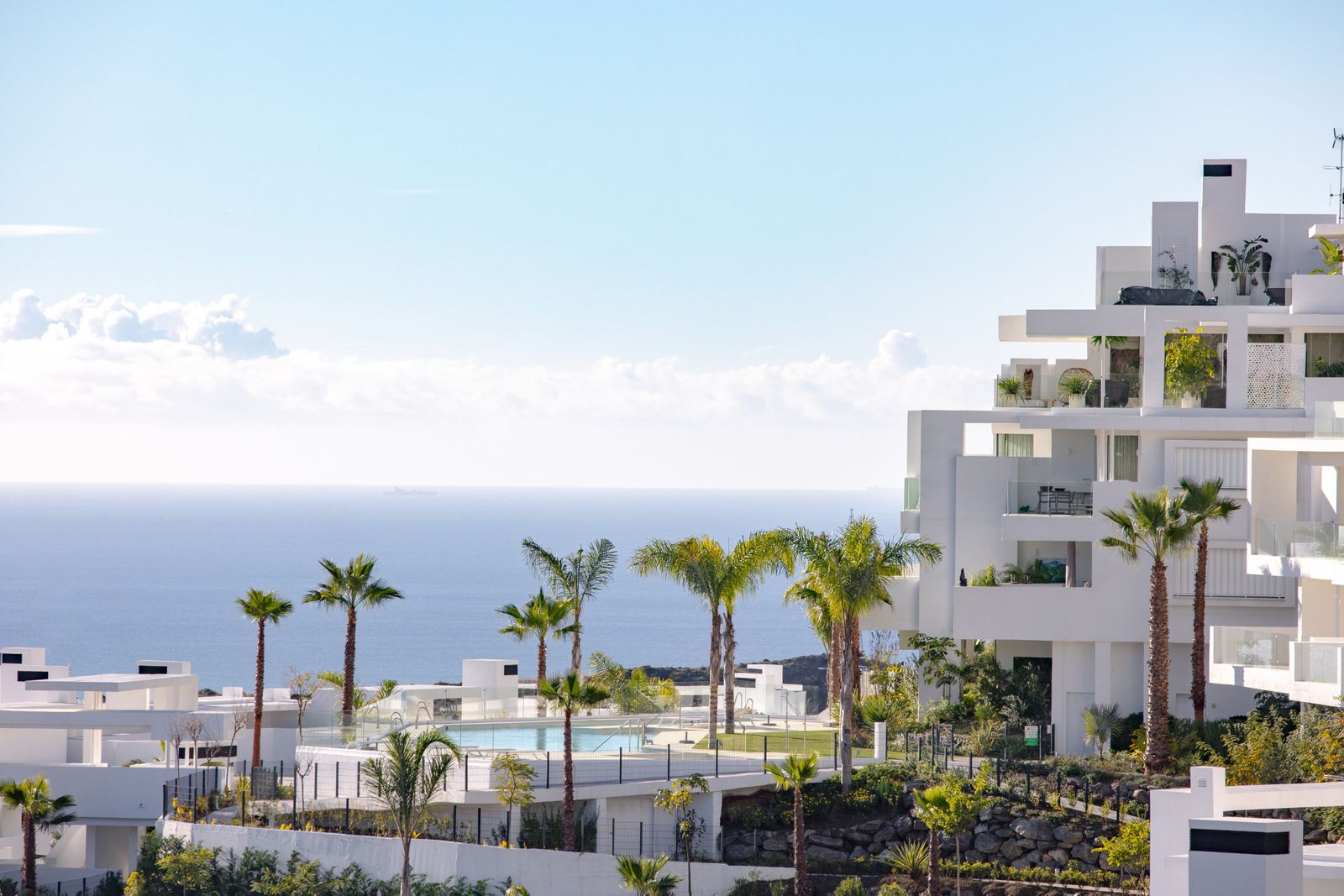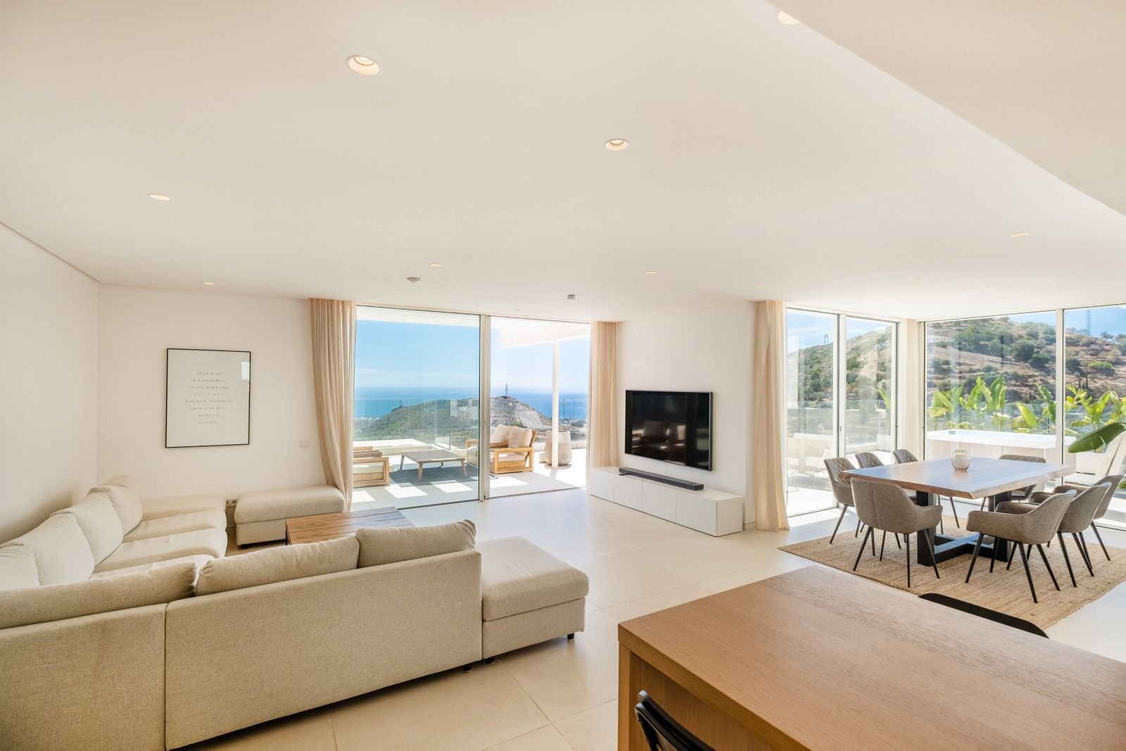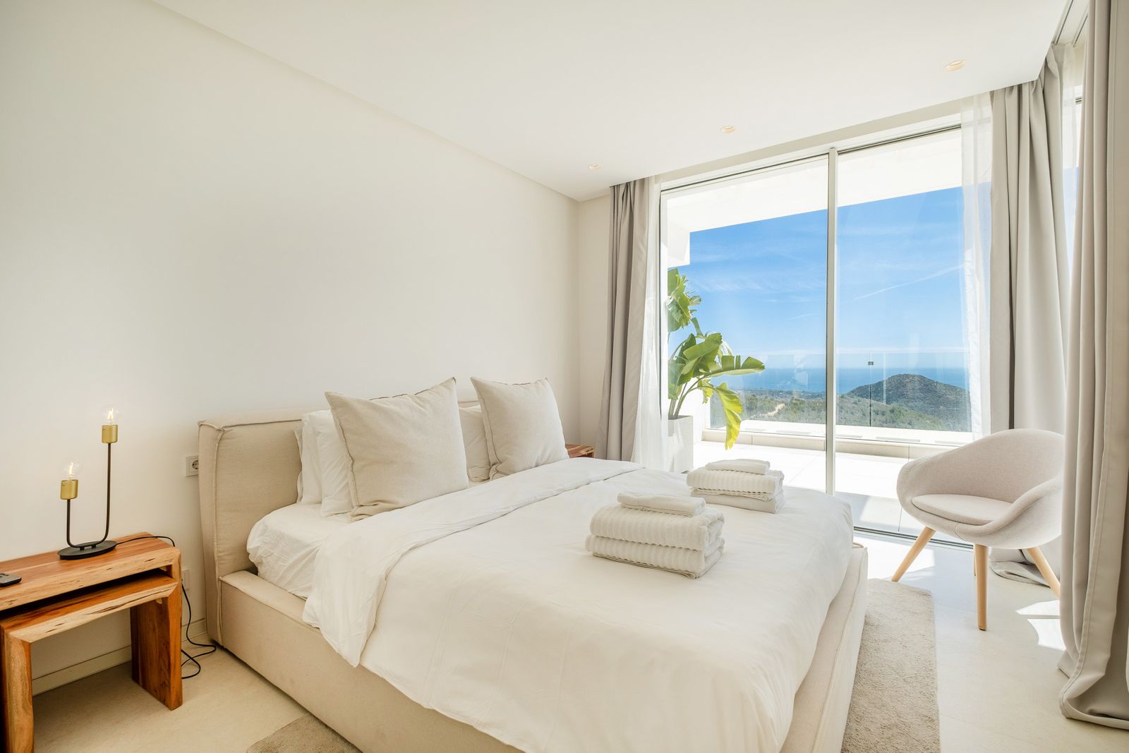 Welcome to one of the most luxurious duplex penthouses currently on the market in the prestigious gated resort-like community - Palo Alto. This penthouse has a spacious and beautiful interior together with huge terrace spaces offering fantastic panoramic views of the Mediterranean sea and mountain views with the sun light throughout the whole day. The home has been developed up to the highest standards and completed in 2020. This penthouse offers an open plan living room connecting the kitchen and dinning area together. The kitchen is designed by Gunni & Trentino with Siemens appliances and has direct and convenient access to the separate laundry area. Going out to the the terrace, you are immediately amazed by one of the best sea and mountain views you can possibly find in Marbella. Each corner offers a private seating area with its own privacy as well. The main terrace has a jacuzzi, lounge area and staircase leading to the rooftop terrace. Once you are on the rooftop terrace, you feel like in a private villa. Over 100m2 extra space has a heated pool, sun beds and lounge sofa to experience a complete serenity and the feeling of absolute luxury. The penthouse has 3 bedrooms, 2 bathrooms and 1 guest toilet room. The master bedroom with ensuite bathroom has a direct access to the terrace and a kingsize bed facing the sunset views. The second bedroom is on the opposite side of the property which also has a direct access to the terrace greeted by the morning sun. The third bedroom is a very generous size with two single beds. Both bedrooms share a bathroom with a bathtub and a toilet. All areas in this wonderful penthouse have a central air-con system with heating and cooling functions which can be controlled individually in every room. The underground secured parking garage for 2 cars and a storage room is included in the price. The parking garage has an elevator access that goes to the top floor and to the entrance of the penthouse. The furniture package is 50.000 Euros. At Palo Alto you will find everything that you can ever need in terms of luxury services: 24-hour security, concierge, tennis court, gym, spa, co-working place, organic food market, horse riding trails, outdoor pools and endless space to enjoy the natural beauty of the mountain and view over the sea. All within just several minutes from shopping centre La Canada, Puerto Banus and the centre or Marbella.