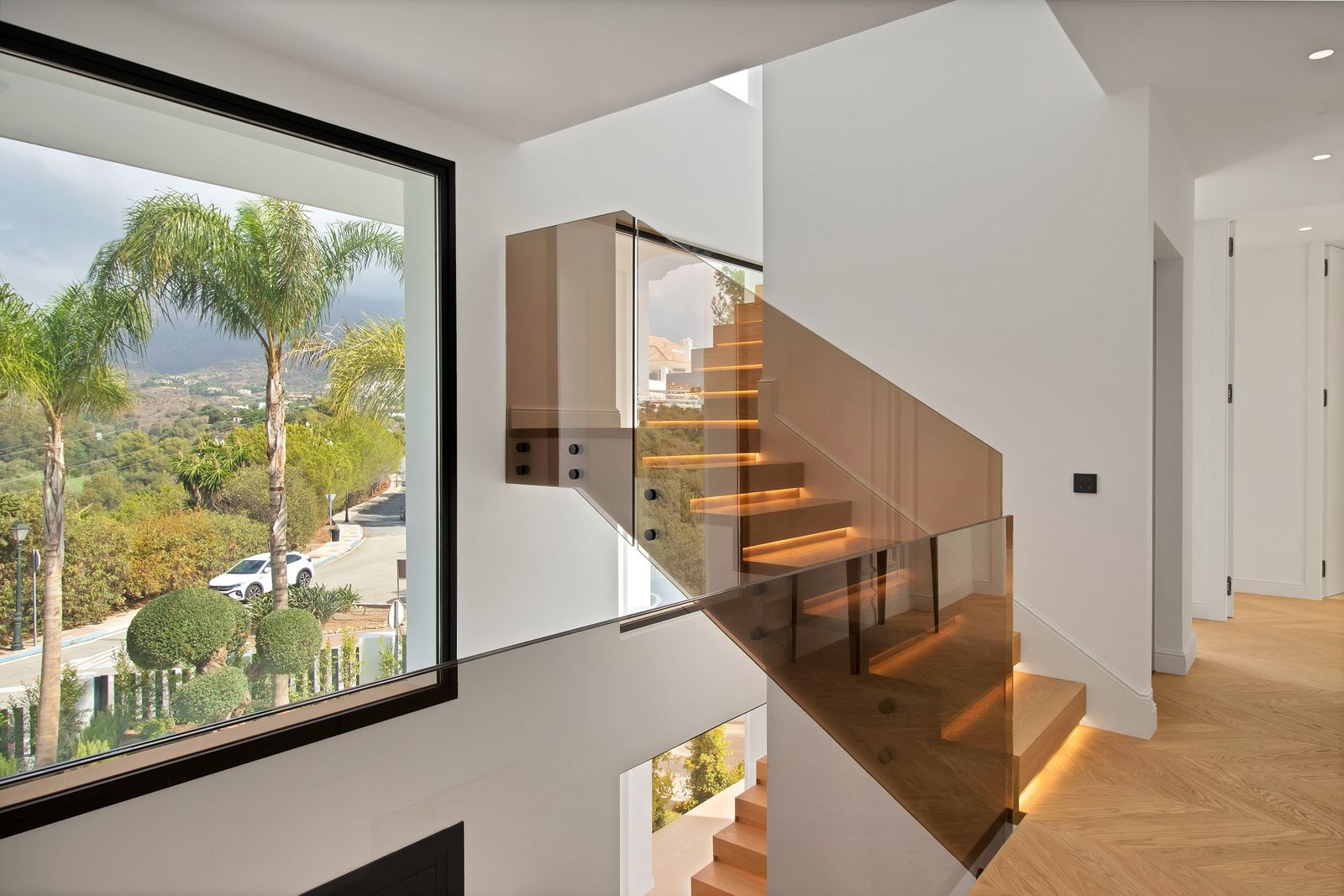 2 Brand new luxury villas are located in the prestigious community of Las Lomas de Marbella. This gated community is considered one of the most luxurious residential areas in Marbella. Offering 24-hour security and close to many amenities such as the prestigious Puente Romano hotel, these villas are truly well located. The south-facing villas have been designed with high standards of quality materials offering comfort and elegance. Given their elevated position, together with their orientation, these villas offer amazing sea and mountain views. When you enter these villas you will be welcomed by a beautiful entrance with water fountains and a parking space giving the house an elegant and peaceful look from the first step. Furthermore, the villas are distributed over 3 levels with 6 bedrooms and 6 bathrooms. The main level is divided into several areas, a dining area, a living area with a fireplace and a beautiful and fully equipped kitchen with state-of-the-art appliances. From this floor, you have direct access to the lush green garden with a beautiful heated saltwater pool and a stylish hammock area, perfect to enjoy with your friends and family. On the upper level, you will find 3 of the bedrooms all of which include an ensuite bathroom and a stylish walk-in closet. The master bedroom has direct access to the large terrace where you will be able to enjoy the amazing views whilst sipping on your preferred beverage. Finally, the basement has parking space for 3 cars, a laundry area, and a staff apartment and a separate kitchen with direct elevator access to the main kitchen. There are 3 more bedrooms on this floor perfect for guests. The top floor of these villas offers an amazing solarium with the potential to create an outdoor gym or a covered lounge area. Overall, these villas offer a true dream!
