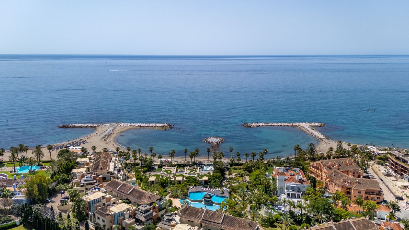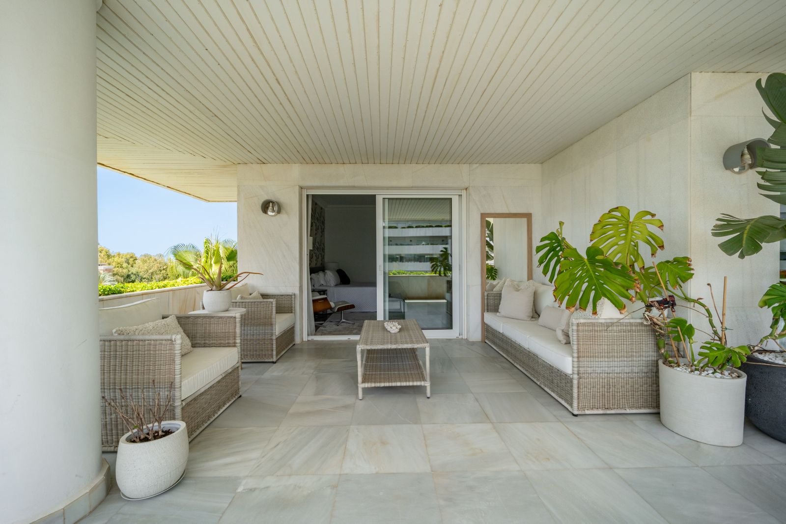 This exclusive 3-bedroom apartment is located in one of the most sought-after residential areas on the sea side, next to Puerto Banús. The apartment has three bedrooms, each with en suite bathrooms, a fully equipped kitchen and a spacious living and dining room. The spacious terrace surrounds the entire apartment and offers magnificent views of the well-maintained garden and the sea. The luxurious complex is just steps from the beach and the marina of Puerto Banús. It offers beautifully landscaped gardens, an outdoor pool, a heated indoor pool, a gym and a closed and secure access for maximum privacy and security. The apartment also includes two underground parking spaces and a separate storage room.