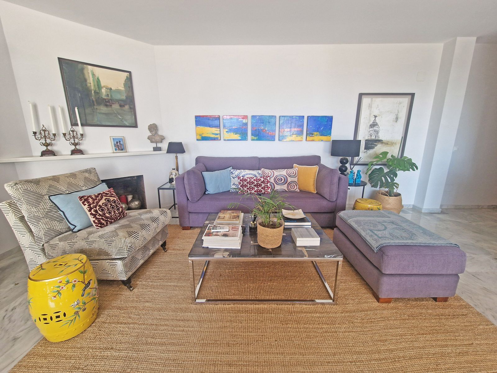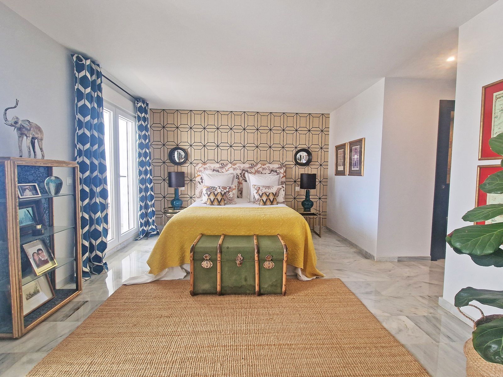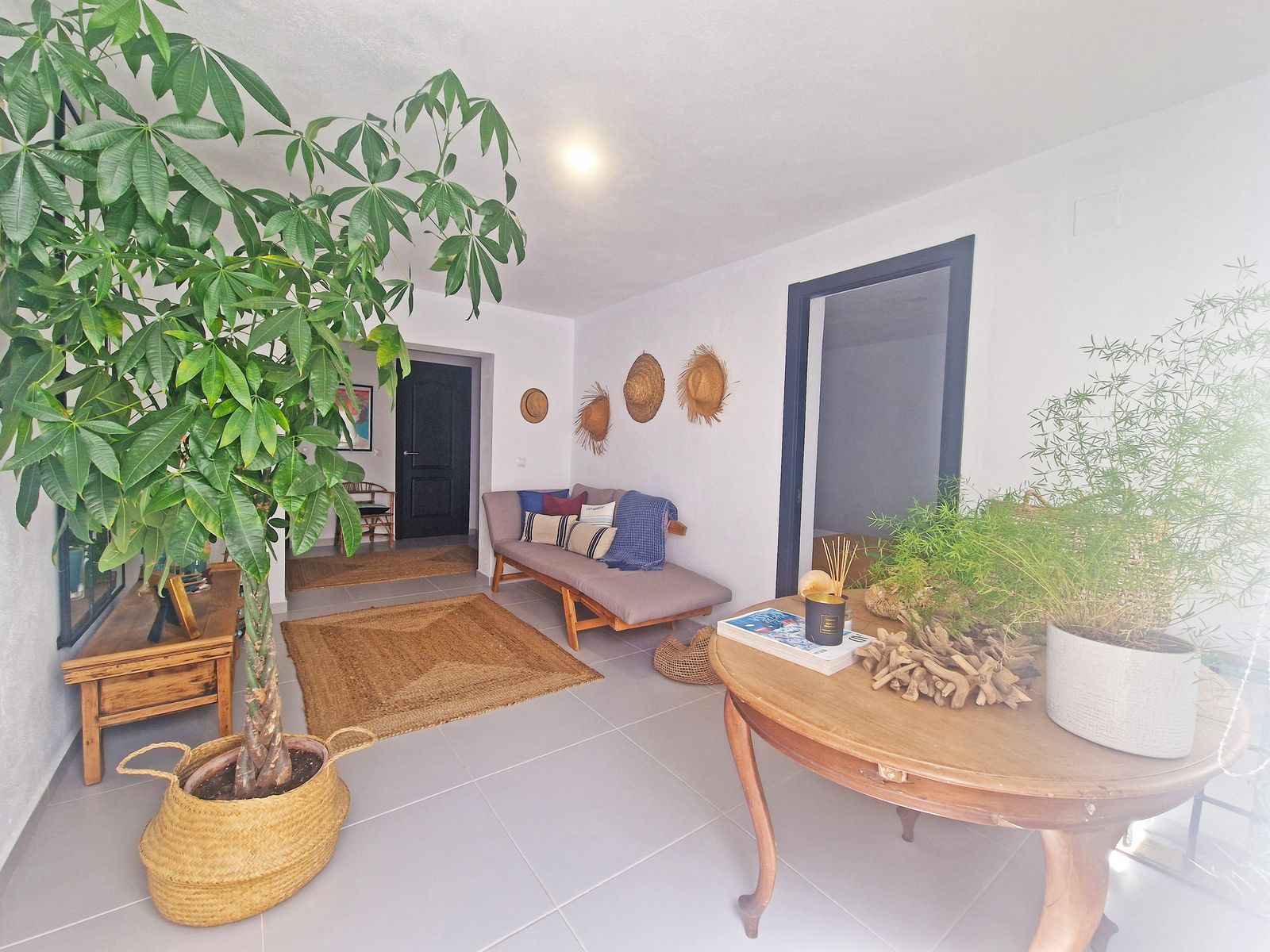 An Exceptional Property in Calahonda with Breathtaking Views and Impeccable Design This beautifully renovated property in Calahonda is truly one-of-a-kind, offering panoramic views of the sea, golf course, and mountains. Thoughtfully restored with exquisite taste and meticulous attention to detail, this home blends elegance, comfort, and functionality in a way that is rarely found on the market. The main house features two spacious bedrooms, including a luxurious master suite that was originally two separate rooms. This exceptional suite boasts a walk-in dressing room and access to a private terrace with spectacular open views—perfect for soaking in the beauty of the Costa del Sol. The open-plan living and dining area, complete with a cozy fireplace, flows seamlessly into a stunning glazed terrace facing south. Thanks to elegant folding patio doors, the interior merges effortlessly with the beautifully landscaped garden, creating a refined indoor-outdoor lifestyle ideal for year-round enjoyment. The kitchen has been completely modernized and opens onto the dining area, making it an integral and inviting part of the living space. A stylish guest toilet adds further convenience on this level. Below the main house, the independent guest apartment offers fantastic flexibility. This semi-basement level includes a comfortable sitting room, a modern shared bathroom, two bedrooms (one without a window), and a spacious storage room. There is also potential to add a fifth bedroom by converting the attic, making this property perfect for growing families or hosting guests. Additional features include air conditioning in all rooms, a private parking space right at the entrance, and the option to park a second vehicle inside the gated community. The secure urbanization also offers a large communal swimming pool and 28.000 m² of beautifully maintained gardens. Perfectly located just 15 minutes from both Marbella and Fuengirola (with its convenient train station), and only 25 minutes from Málaga International Airport, this home offers peaceful living without sacrificing connectivity. Calahonda provides all the amenities needed for comfortable year-round living or unforgettable holidays—beaches, restaurants, shops, supermarkets, and more are all just minutes away. Properties of this quality and character are extremely rare—this is a unique opportunity to own a truly remarkable home in one of the Costa del Sol’s most desirable locations.