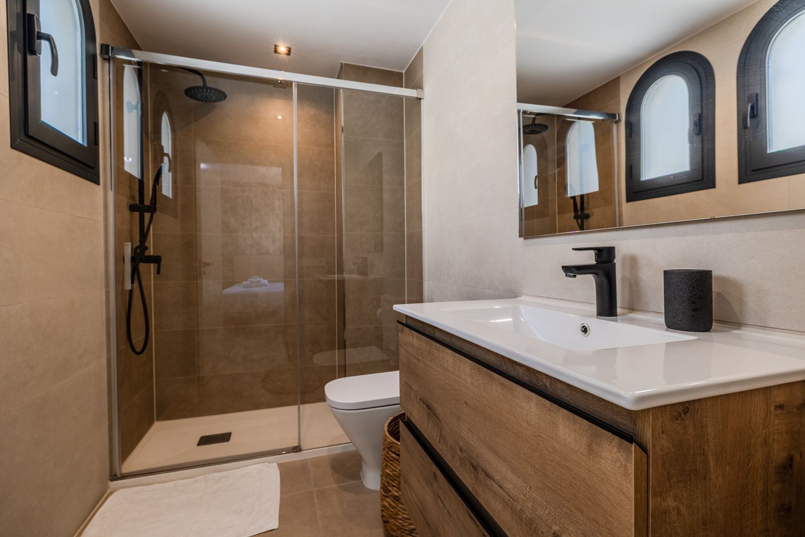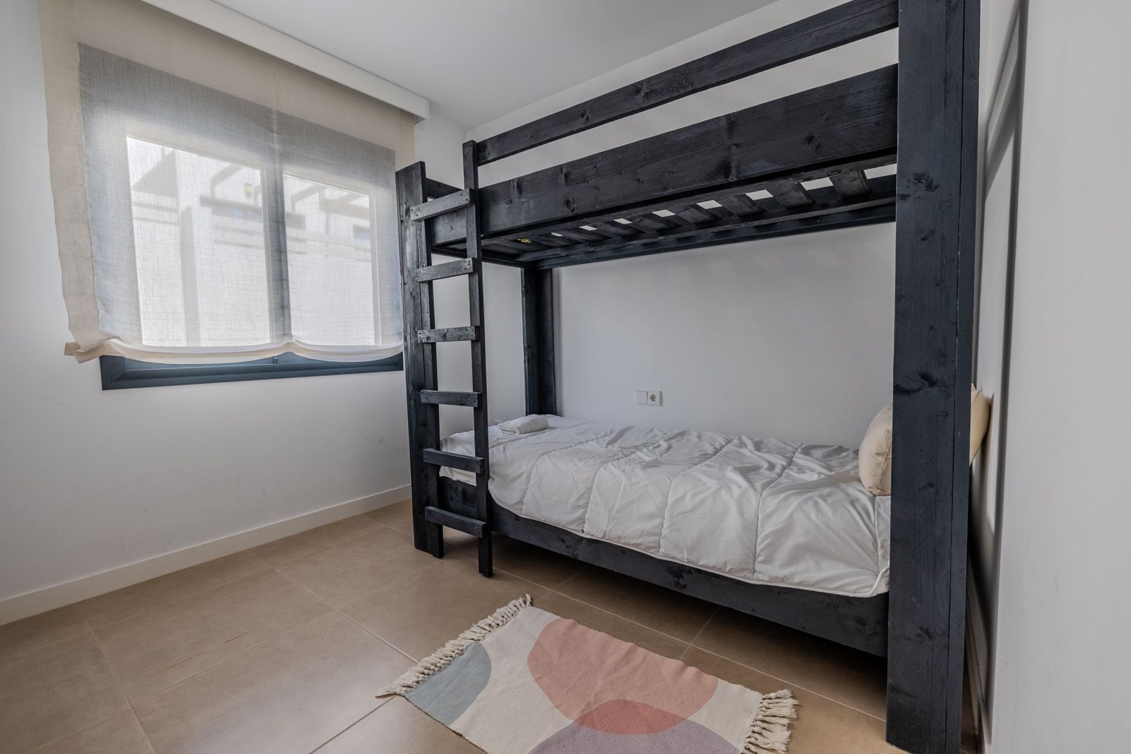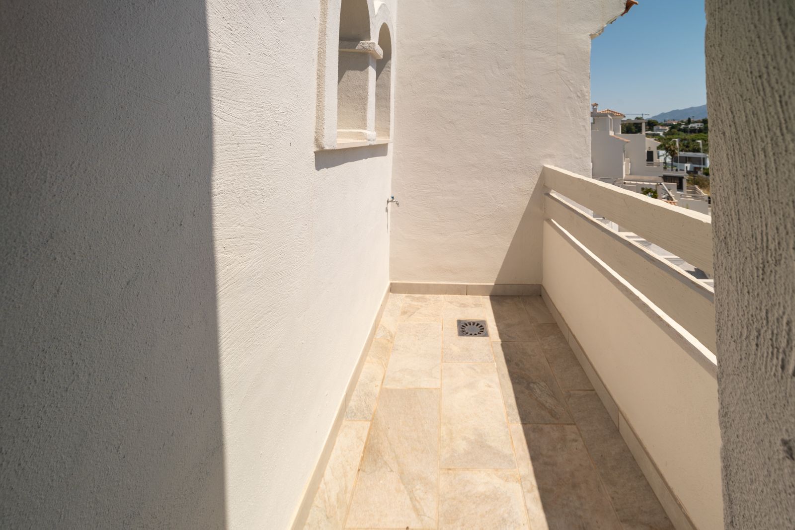 Located within the exclusive El Campanario area of Estepona, this elegant corner townhouse is part of a peaceful development of just 47 homes. Designed with traditional Andalusian architecture, the property enjoys spacious terraces and an abundance of natural light throughout. Spanning 131.34 m² across three levels, the townhouse features three bedrooms, two bathrooms, a guest toilet, a bright living-dining area, and a fully equipped kitchen. Outdoor spaces include a welcoming entrance terrace, a second terrace off the main living area, and a rooftop solarium with a pergola—ideal for relaxing or entertaining. The home also includes a basement, two private parking spaces, and two storage rooms as well. Residents of this charming complex have access to beautifully landscaped gardens and a communal swimming pool. Ideally situated, the property is just 5 minutes from San Pedro Alcántara, 15 minutes from Puerto Banús, and within easy reach of Marbella town centre and Estepona. Malaga International Airport is conveniently located only 45 minutes away as is Gibraltar Airport. The home is also surrounded by some of the best golf courses in the area, making it perfect for golf enthusiasts.