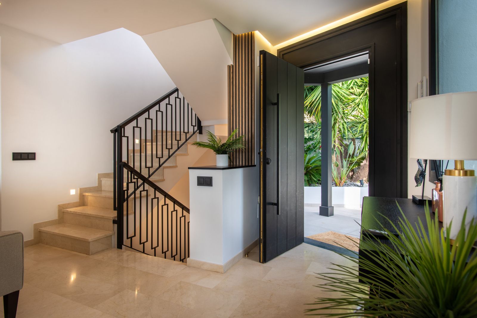 Nestled in the prestigious La Quinta area of Benahavis, this stunning 303-square-meter villa (386 sqm including terraces) sits on an expansive 765-square-meter plot, offering an unparalleled blend of luxury living and natural beauty. With its coveted south-facing orientation, the property is bathed in natural light throughout the day while providing breathtaking panoramic views of the sea, golf course, and surrounding mountains. The thoughtfully designed home features five spacious bedrooms and five bathrooms, ensuring comfort and privacy for family and guests alike. The outdoor living experience is truly exceptional, with a private garden showcasing a sparkling pool, fully equipped outdoor kitchen, and a dedicated gym area – perfect for embracing the active Mediterranean lifestyle. The property includes a generous two-car garage, providing secure parking and additional storage space. What sets this villa apart is its extraordinary location that perfectly balances tranquility with convenience. Step outside your door to discover hiking trails winding through pristine natural landscapes, while world-class golf courses lie just moments away. Despite this serene setting, you’re only 10 minutes from the area’s finest restaurants and entertainment venues, and a 4 kilometers from beautiful beaches. The property sits on a peaceful, family-friendly street that epitomizes safety and community, making it an ideal sanctuary where you can enjoy the best of both worlds – the excitement of Costa del Sol living and the serenity of mountain views and nature at your doorstep.