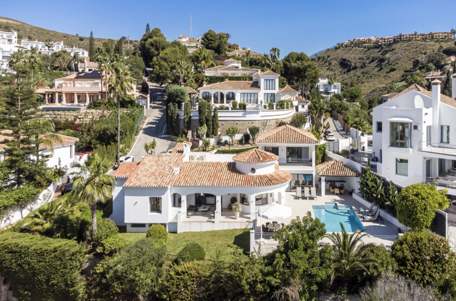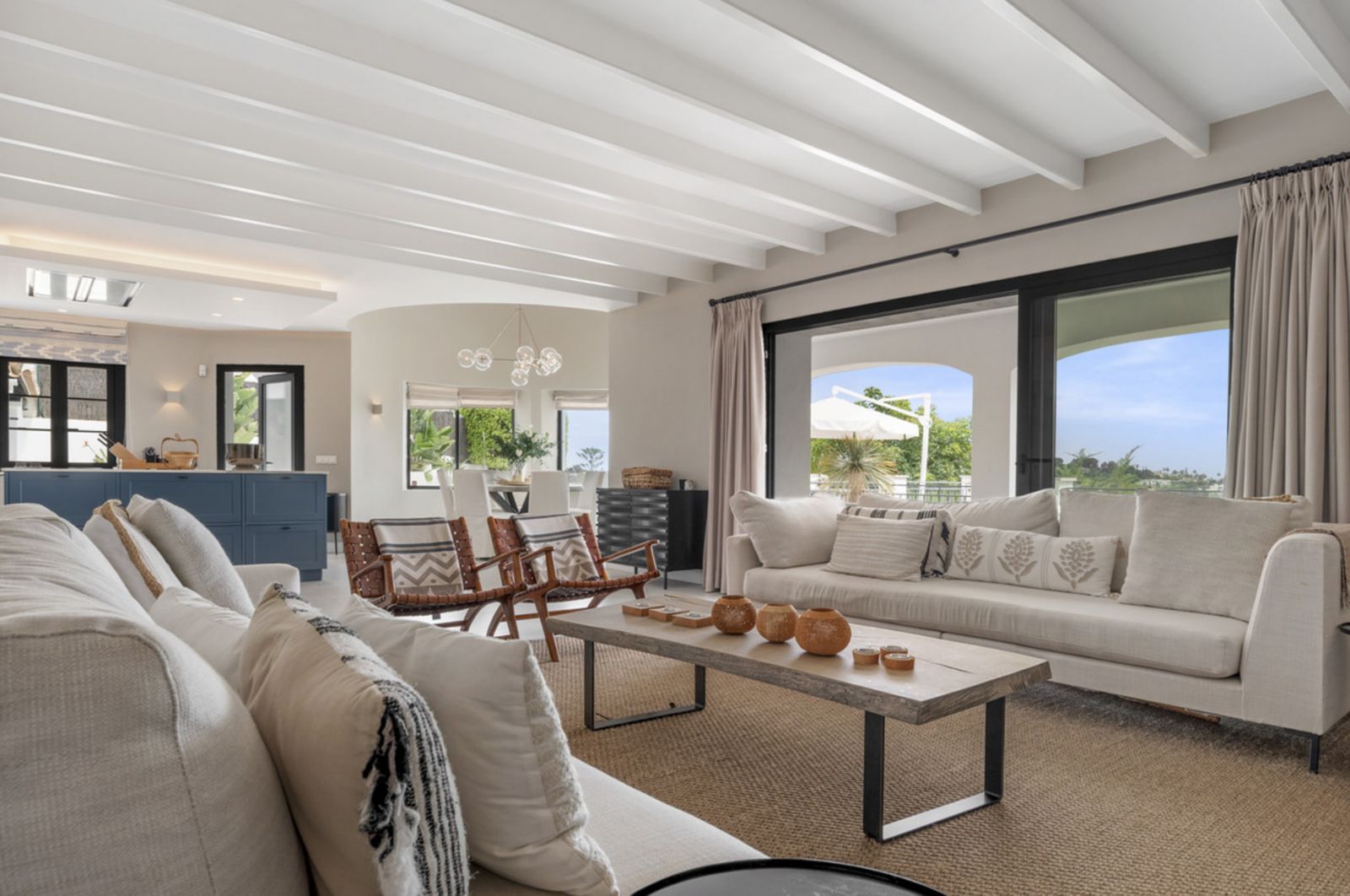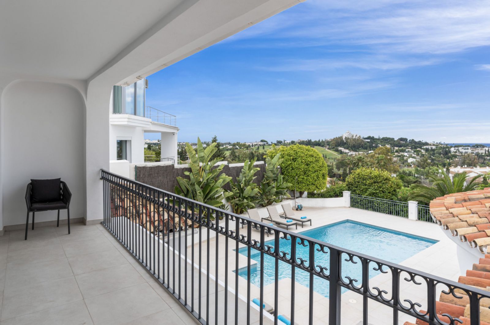 This Andalusian-style villa, fully renovated to the highest standards, combines authenticity with modern elegance. Ideally located in the enclave of El Paraíso Alto, Benahavís, the home offers breathtaking panoramic sea and golf views, while being just minutes from Marbella, Puerto Banús, and Estepona. Set on a 1,308m² plot, the property features 457m² of family living space and a 200m² terrace with sweeping views. The villa comprises five spacious bedrooms and five bathrooms, including three on the main floor and two upstairs with private terraces and expansive vistas. Outdoor living is equally impressive, with a large private pool, mature gardens, chill-out areas, a covered terrace, and an integrated barbecue kitchen for alfresco dining. A two-car garage, basement space, alarm system, and 24-hour security further enhance convenience and peace of mind. The villa enjoys a prime location surrounded by world-class golf courses, prestigious international schools, and supermarkets, making it an exceptional choice for families. With its tourist license and LPO in place, the property has already proven itself as a high-demand holiday rental, also offering strong investment potential.