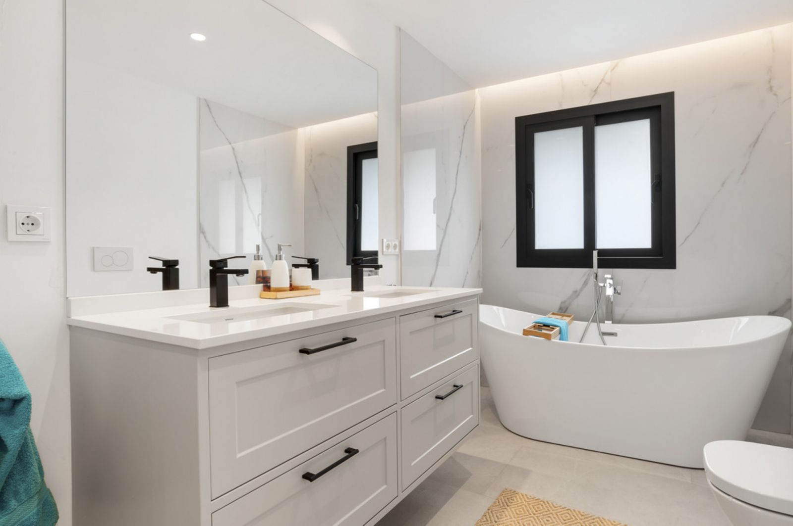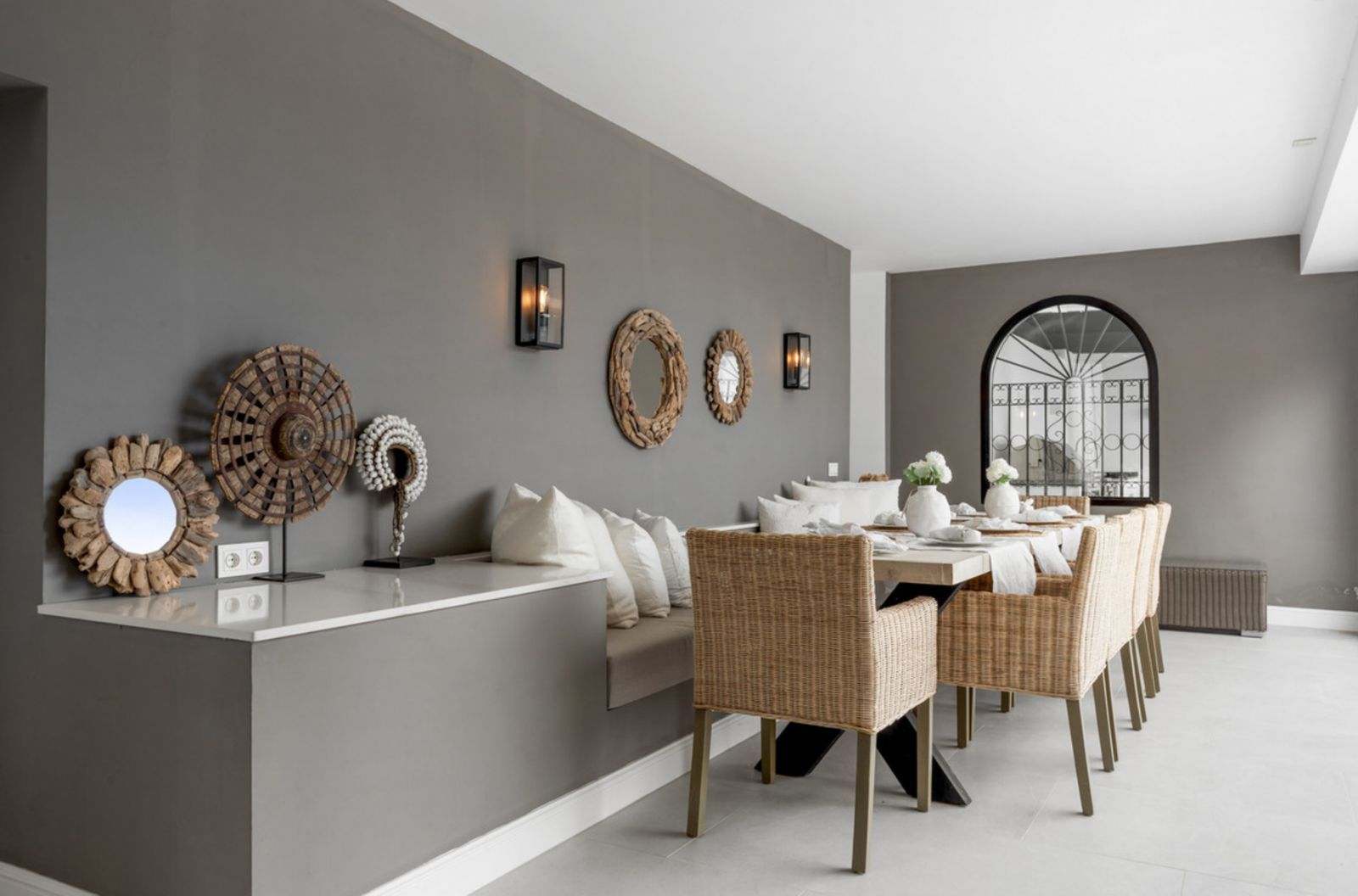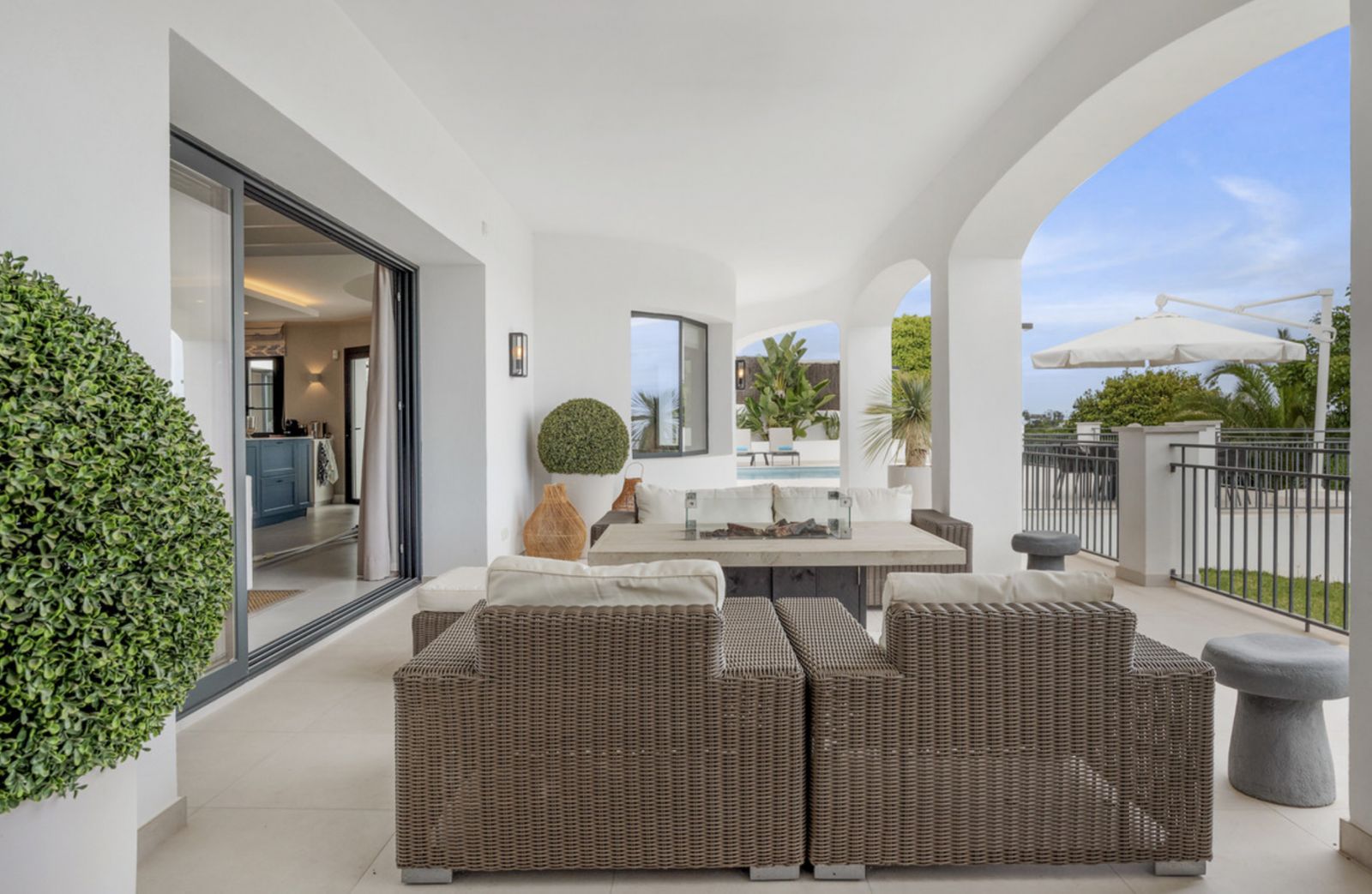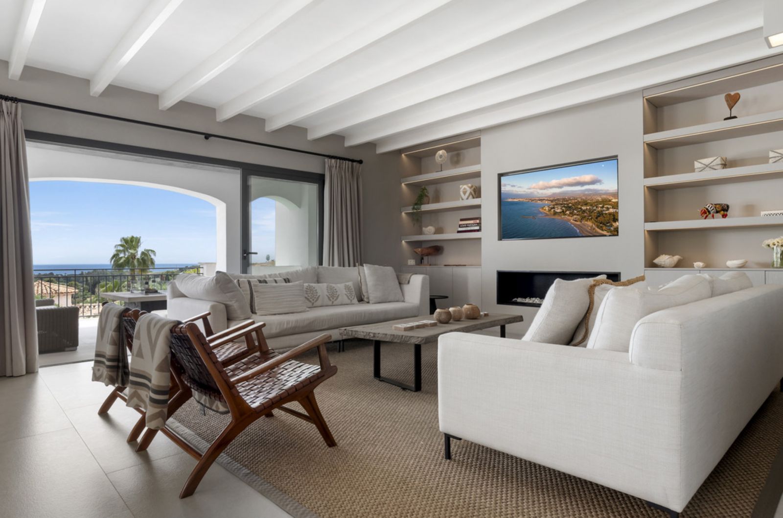 This Andalusian-style villa, fully renovated to the highest standards, combines authenticity with modern elegance. Ideally located in the enclave of El Paraíso Alto, Benahavís, the home offers breathtaking panoramic sea and golf views, while being just minutes from Marbella, Puerto Banús, and Estepona. Set on a 1,308m² plot, the property features 457m² of family living space and a 200m² terrace with sweeping views. The villa comprises five spacious bedrooms and five bathrooms, including three on the main floor and two upstairs with private terraces and expansive vistas. Outdoor living is equally impressive, with a large private pool, mature gardens, chill-out areas, a covered terrace, and an integrated barbecue kitchen for alfresco dining. A two-car garage, basement space, alarm system, and 24-hour security further enhance convenience and peace of mind. The villa enjoys a prime location surrounded by world-class golf courses, prestigious international schools, and supermarkets, making it an exceptional choice for families. With its tourist license and LPO in place, the property has already proven itself as a high-demand holiday rental, also offering strong investment potential.