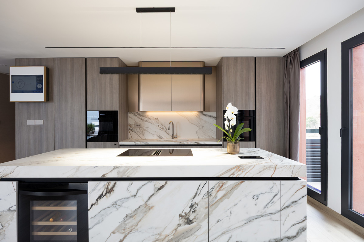 Deze uitzonderlijke residentie biedt een prachtige mix van design, comfort en panoramische schoonheid. Het appartement heeft een bebouwde oppervlakte van 145 m² en twee privéterrassen van in totaal 45 m², elk doordacht ontworpen met weelderig groen, een automatisch irrigatiesysteem en een privéjacuzzi. Het uitzicht van 270 graden omvat de zee, de kustlijn en de omliggende heuvels - op heldere dagen zijn zelfs Gibraltar en de verre kust van Afrika te zien. Een privégarage van 14 m² met directe lifttoegang zorgt voor gemak en exclusiviteit.