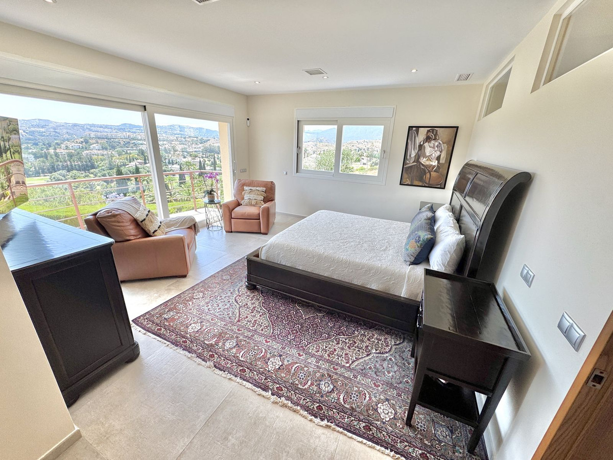 Beside the main villa entrance is a second entrance to a self-contained 2-bedroom guest apartment with a bathroom, kitchenette, and private entrance, perfect for guest retreat or staff quarters. Even this separate unit enjoys 2 balconies with commanding views of the golf course, Mediterranean Sea, and mountains.