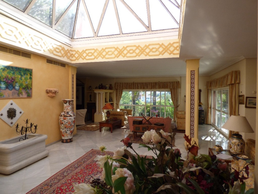 THE LARGEST HOUSE IN TORRENUEVA IN MIJAS AT WALKING DISTANCE TO THE BEACH AND TO THE MOST POPULAR VILLAGE OF LA CALA WHERE YOU FIND SUPERMARKETS, BARS, SHOPS, RESTAURANTS ETC. THE ROOMS ARE ALL VERY SPACIOUS ON THE MAINFLOOR THERE ARE 3 LIVING ROOMS TWO SEPERATE DINING AREAS LARGE MODERN KITCHEN, OFFICE AND A GUEST TOILET THERE ARE 2 FIRE PLACES FOR THE 2 SITTING ROOMS. THE VILLA HAS A/C THROUGHOUT THE HOUSE AND CENTRAL HEATING BY GAS. ON THE FIRST FLOOR A MASTER BEDROOM WITH A CHANGING ROOM AND A LARGE BATHROOM WITH JACUZZI AND 2 BEDROOM MORE WITH 1 BATHROOM. ON THE GROUNDLEVEL 6 BEDROOMS AND 3 BATHROOM, LIVING, GARAGE EN RECREATION ROOM. LARGE POOL WITH CHANGING ROOM AND A BEAUTIFULLTROPICAL GARDEN. NEEDS SOME TLC.