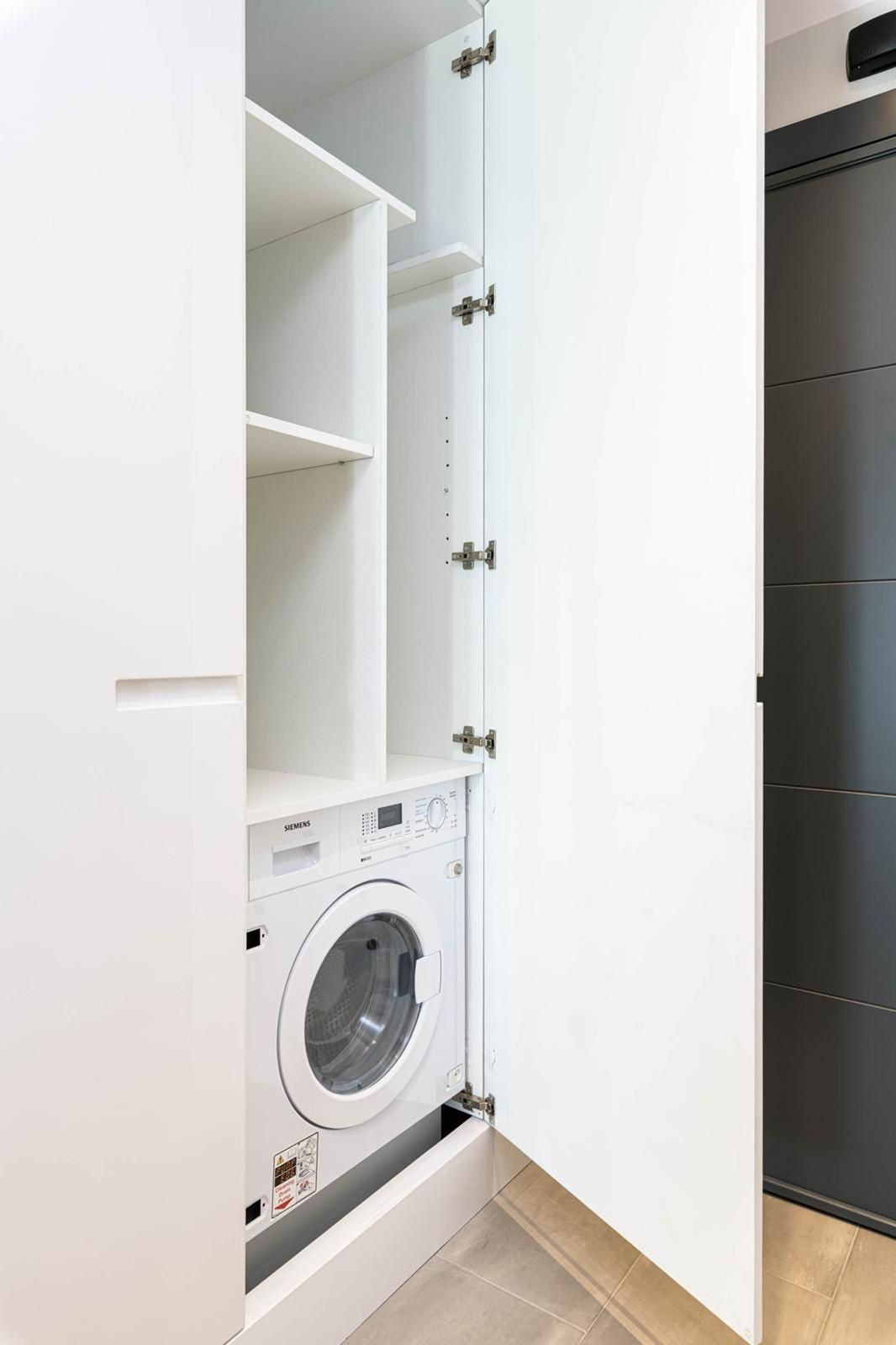 The apartment is well designed, featuring air conditioning in both the living room and bedroom, built-in wardrobes, and large sliding doors that provide direct access to the terrace from both the living room and the bedroom.