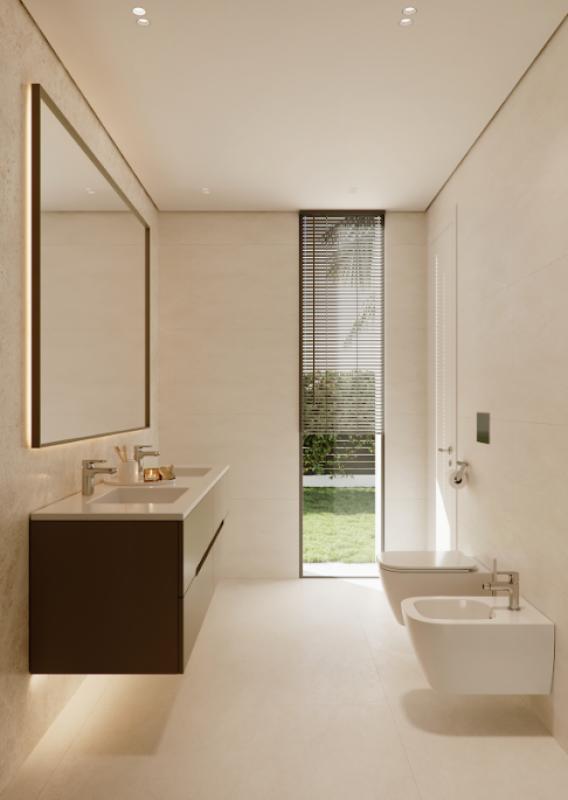 The quality is top-notch, providing comfort throughout the year. You’ll appreciate underfloor heating across the home, air conditioning for both cooling and heating, large aluminium windows and doors, glass balustrades, and porcelain flooring that combines aesthetics and durability. Outside, you’ll have your private garden, individual pool, and parking and garage area.