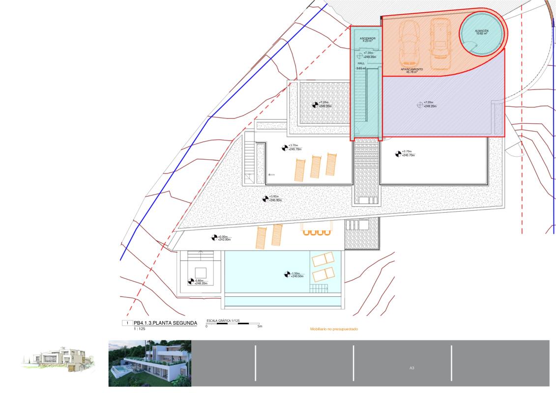 Advantages of a new building Villa Macarena: This exceptional property boasts three en-suite bedrooms, a guest toilet on the main level, and an additional bathroom adjacent to the pool area. The upper level features a space for a gym, a covered terrace, and an outdoor kitchen. A two-car garage is thoughtfully situated at the top of the residence.