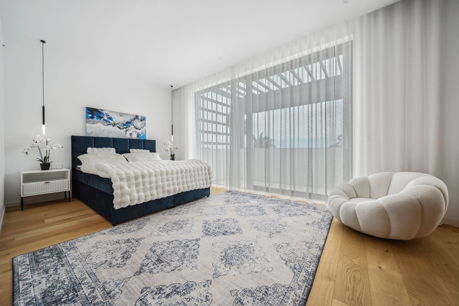 ABOUT THE VILLA There is a modern style detached house with an excellent location for sale. The house will be completed in 2023 The property is only 350.0 m from the sea and 28 m above sea level. The property is bordered by a protected pine forest from the north. The house''s roof terrace offers 180 degree free view of the sea and the surrounding mountains. The size of the property is 710,0 m2. The house is a three-storey modern style luxury villa with a 3x10m outdoor heated pool on the patio. The building has a total area of 273m2 covered with terraces. The floors of the building are connected by a staircase inside the building and an elevator that runs out to the roof terrace of the last floor. On the 0 floor of the building there is a 157,7m2 garage (4 cars), utility room, toilet, technical room and two additional rooms with windows. On the first floor there is an entrance hall, open kitchen-living room, ceiling height 4,6m, separate toilet, large bedroom with a wardrobe and a separate bathroom. On the second floor there are one large bedroom with a wardrobe and a separate bathroom and 2 normal size bedrooms, 1 bathroom, and a study area. The roof terrace will be equipped with a jacuzzi, shower and an outdoor kitchen. Natural oak parquet is used on the floors of the house. Residential heating is solved on the basis of air-water heat pump, heat transfer with floor collectors, in addition there is an electric floor heating in damp rooms. Each living space also has an autonomous air conditioner. The building is equipped with forced ventilation and a central vacuum cleaner. The building has an alarm system and IT and TV readiness. German ALNO kitchen and Bosch kitchen appliances. The building will be completed in 2023 The building will be completed in 2023 350 meters to the beach 28 meters above sea level 10 min drive to Marbella 35 min drive to Malaga Airport 180 degrees views from roof terrace