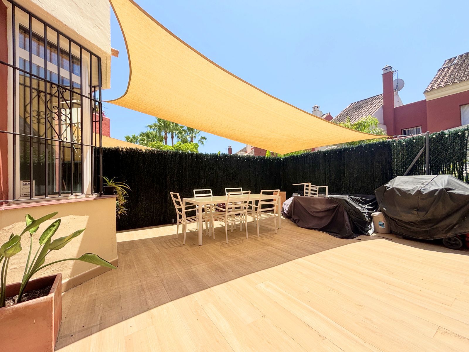 CHARMING TOWNHOUSE WITH TERRACE, PRIVATE GARAGE, AND SOUTH-FACING ORIENTATION Located in a peaceful residential development in Estepona, just a few minutes' drive from all amenities, shops, and schools, this bright south-facing townhouse is spread over three comfortable levels — perfect for families or as a second home on the Costa del Sol.The basement level features a spacious 53 m² private garage, ideal for both vehicles and storage.The main floor offers a guest toilet, an independent kitchen, and a cozy living-dining room with direct access to a pleasant terrace, which in turn provides easy access to the communal areas and swimming pool — perfect for enjoying the Mediterranean climate.Upstairs, there are three naturally bright bedrooms and a full bathroom; the master bedroom also includes a small private terrace.The community is well-maintained and quiet, with a swimming pool and green areas, all with low maintenance costs.An excellent investment opportunity, whether for year-round living or as a high-yield rental during the peak season.Don’t hesitate to come and visit!