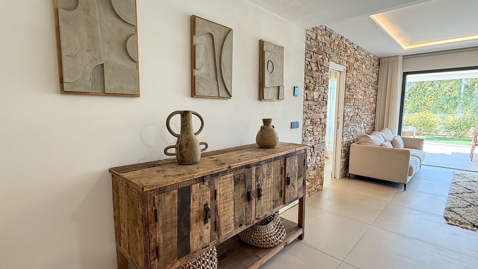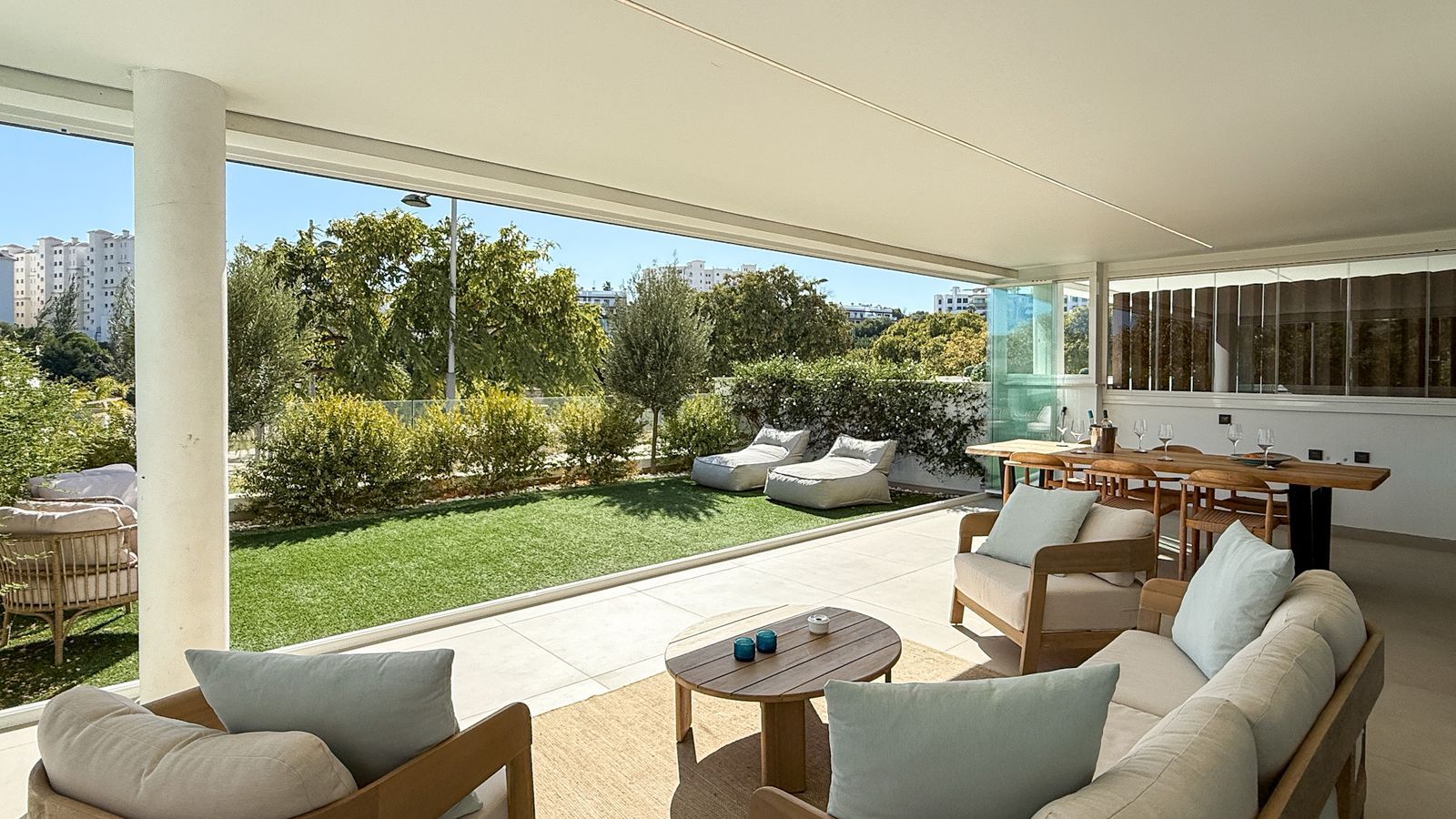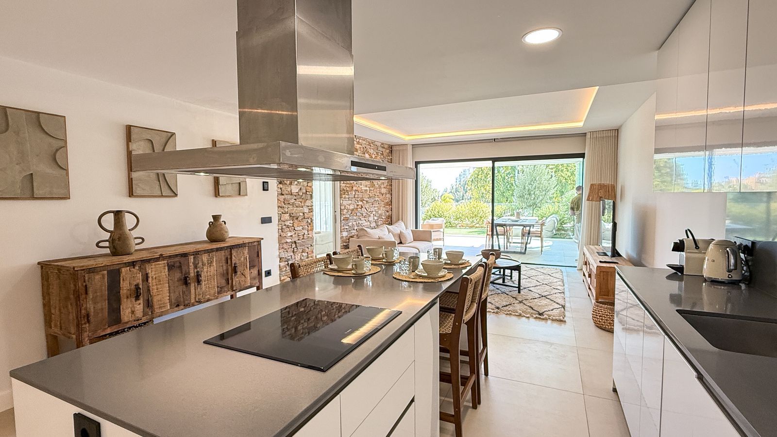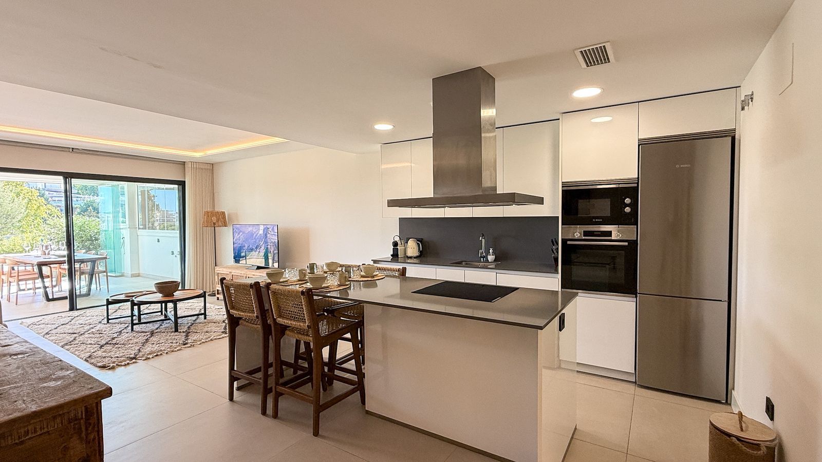 Fantastic luxury apartment located in the centre of Estepona, the garden of the Costa del Sol. This newly build apartment is conveniently situated within walking distance of the marina of Estepona , close to the romantic and vibrant old town and only 15 minutes walk from the beach of La Rada. Offering 2 bedrooms and 2 bathrooms. The main bedroom has an open plan bathroom with walk-in shower, anti-fog mirrors, electric towel racks and extra wardrobes. A fully equipped and open plan kitchen with all Bosch appliances and spacious living dining area. Carefully decorated in a perfect blend of Scandinavian minimalism, boho accents and ethnic touches. But more than that, it is the ideal place for outdoor living as there is also an oversized covered terrace that has been recently upgraded with glass curtains for maximum use of the terrace all year round and a very nice mediterranean garden with very low maintenance. The terrace has water and electricity pre-installation for an outdoor kitchen. The garden has sprinkler installation for automatic watering of the plants as wel as pre-installation for a jacuzzi. The domotic system for home automation is also installed to control the lights and electric blinds. Air conditioning and floor heating are provided though aerothermal energy. Also good to know is that the extra spacious utility room with washing and tumble dryer is just across the front door. A private underground parking space is also included in the price. The exclusive gated community offers a large outdoor pool and state of the art gym facilities, community area, game room and secure entrance. Alexia Life stands out for its architecture and design but also for the great community and is a must see if you are looking for the perfect holiday house or for all year round living.