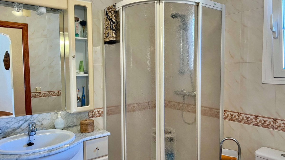 This Spanish villa, located in a quiet neighbourhood and close to Calpe beach, is a property with options! It has 3 floors, a very spacious garage of which a part can be provided as a studio, an annex with its own terrace, a private pool with outdoor shower, stone barbecue, and so much more. On the ground floor, besides the indoor garage, you will also find a large storage room, a bathroom and bedroom . The first floor consists of the main entrance with a hall, a bright living and dining area, a fully equipped kitchen, bedroom and bathroom. The top level provides three more bedrooms and a bathroom. The property is fully fenced in and is being sold furnished.