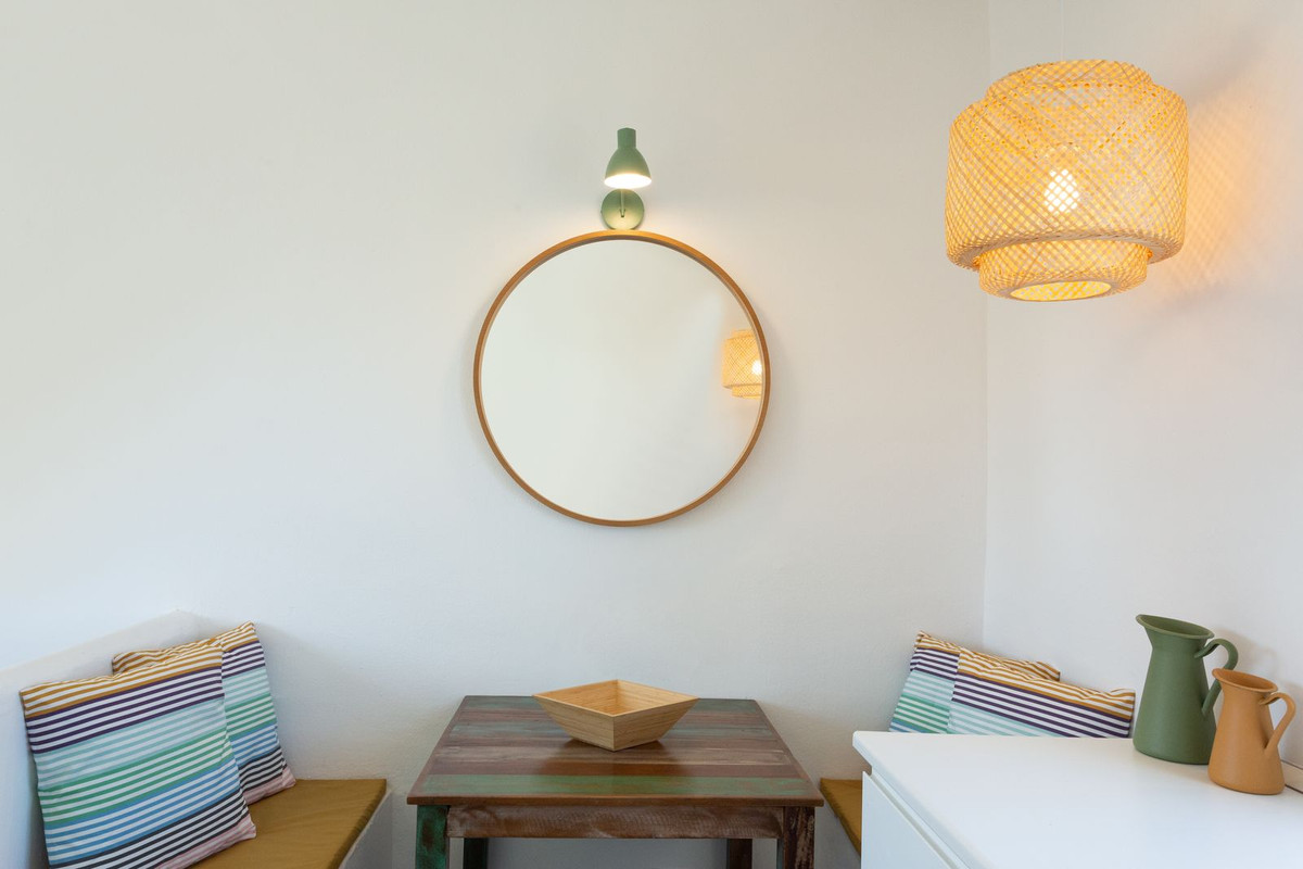 Upstairs we have a kitchenette with breakfast corner and views over the main pool and the sea.