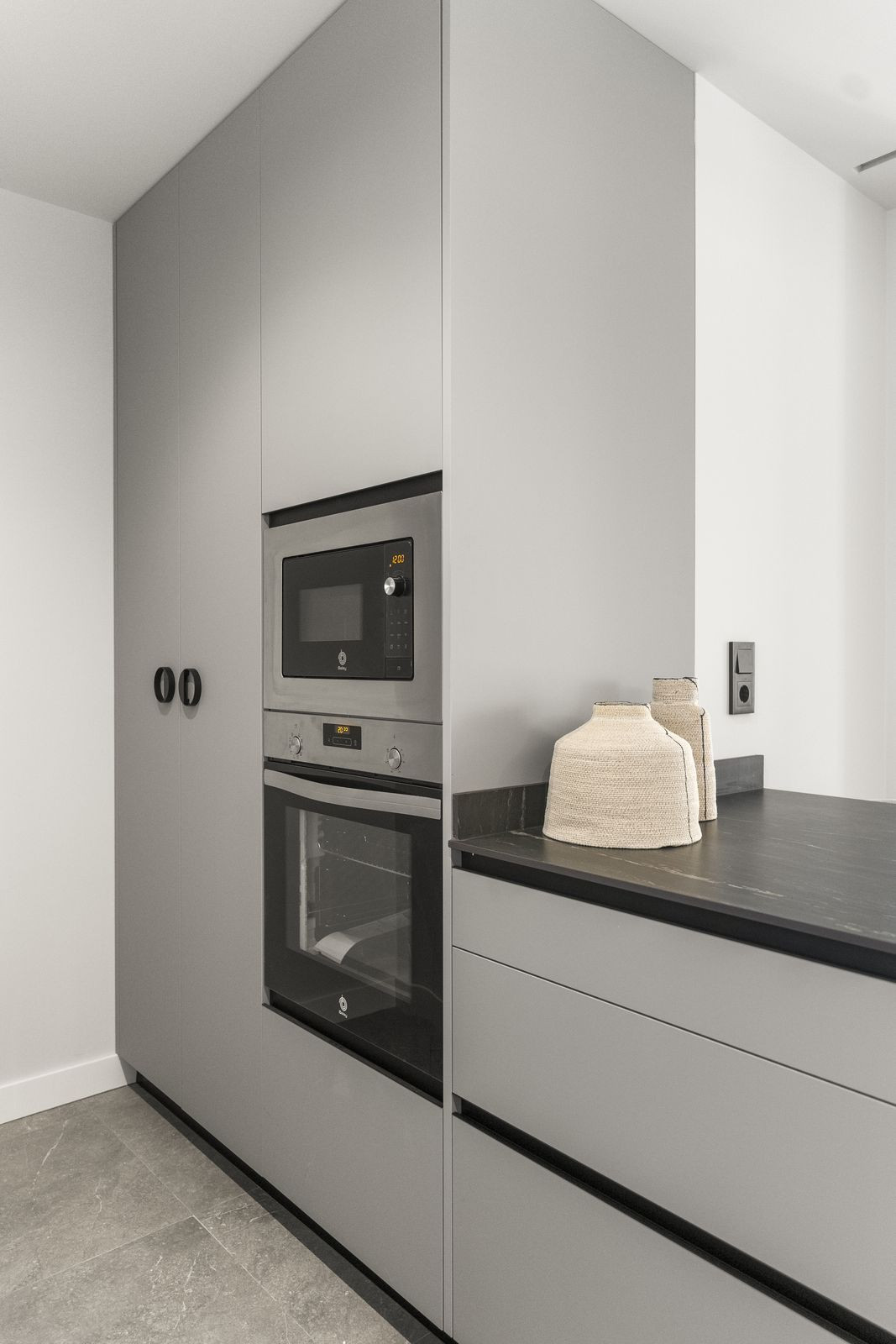 The property features three spacious bedrooms and three full bathrooms, ideal for families or those who value space and privacy. The contemporary design kitchen is seamlessly integrated with the living-dining area, creating a bright and welcoming atmosphere that extends to a charming terrace—perfect for enjoying Málaga’s pleasant climate.