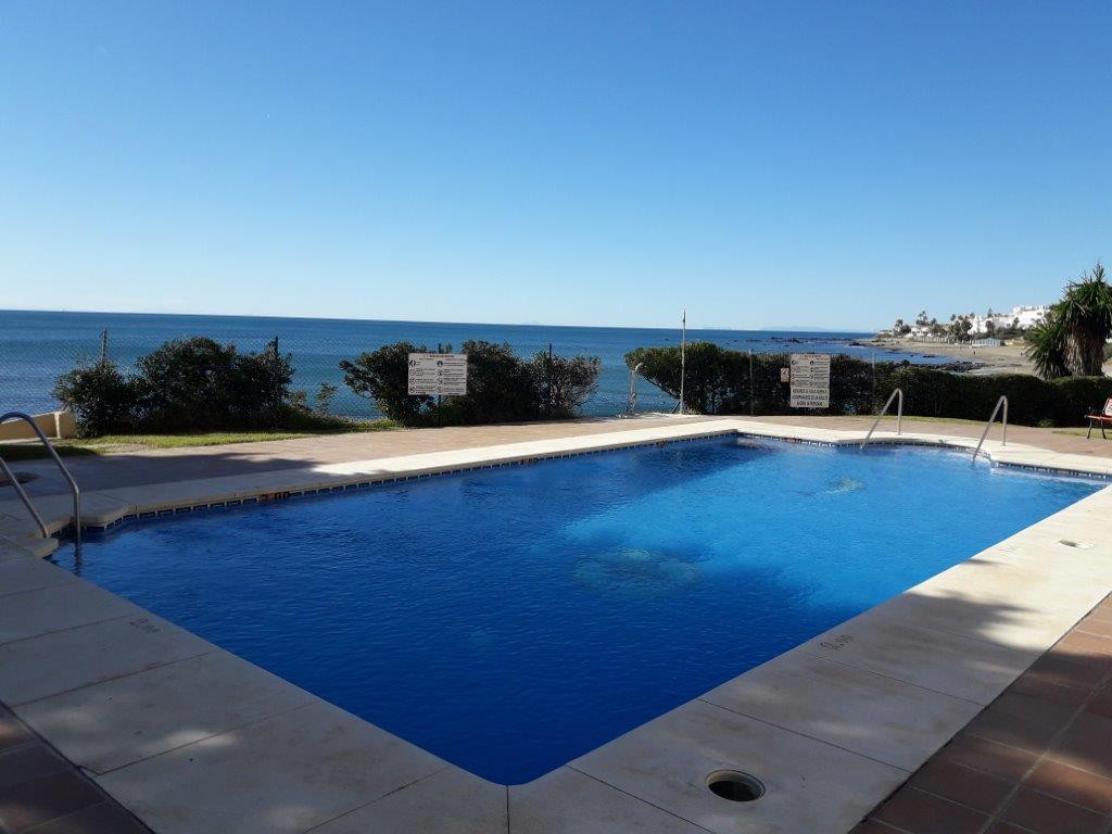 The building offers direct access to the beach, a community pool, lush gardens, and a wooden promenade, making it ideal for leisurely strolls by the sea. Convenience is key, with nearby amenities and excellent connections: only 10 minutes to Fuengirola, 15 minutes to Marbella, and 25 minutes to Malaga Airport.