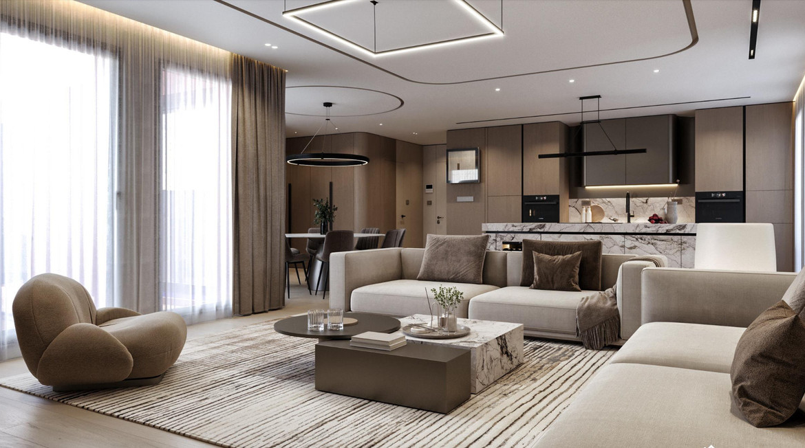 A state-of-the-art smart home system integrates seamlessly throughout the apartment. Concealed LED and ambient lighting, Maytoni designer fixtures, and a Bticino Living Now switch system create mood and ease at the touch of a button. Smart air-conditioning, high-speed fibre internet with boosters in every room, and a fully connected electrical network ensure luxury living in its most intelligent form.