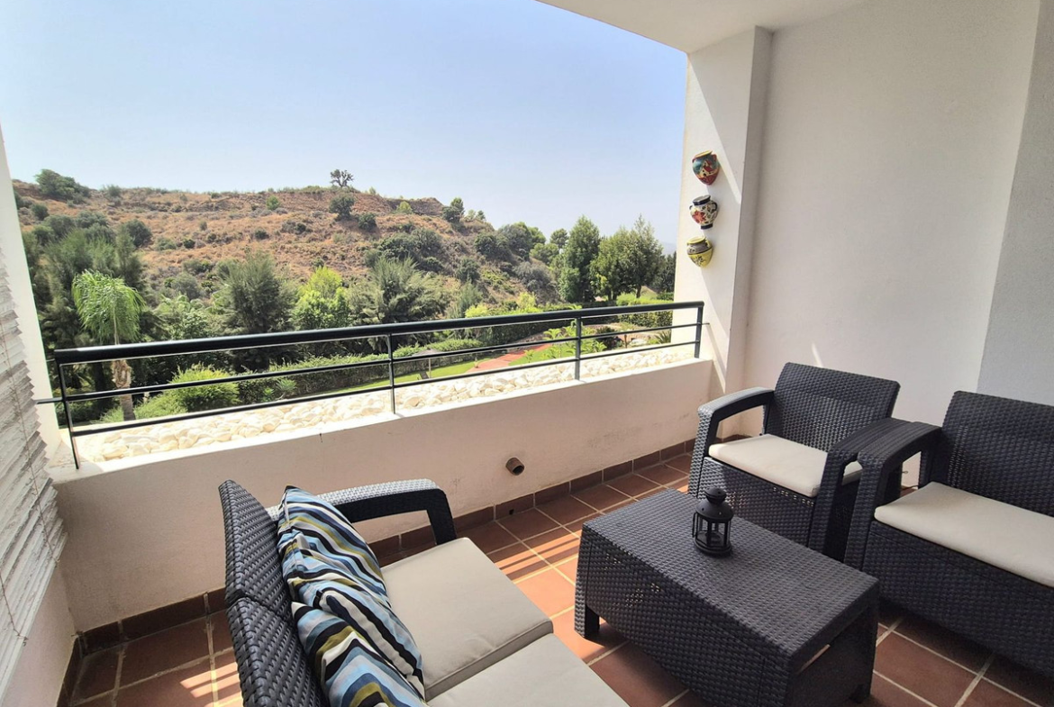 Fantastic move in ready elevated ground floor apartment with nice pool and mountain views in Alhaurin Golf.