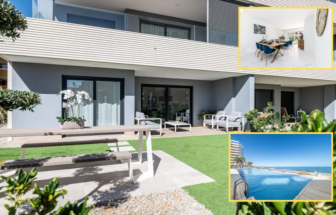 Discover this stunning new ground floor apartment in the prestigious Posidonia complex, located right by the sea in Punta Prima, Orihuela Costa. Offering breathtaking Mediterranean views, this luxurious residence is designed for those who seek the perfect combination of comfort, elegance, and an unbeatable location.This modern apartment features 2 spacious bedrooms and 2 stylish bathrooms, with high-end finishes throughout. The open-plan living area is bathed in natural light, seamlessly connecting to a large private terrace, where you can relax and enjoy the refreshing sea breeze.Posidonia is an exclusive residential complex with top-tier amenities, including three infinity pools, beautifully landscaped gardens, and direct beach access. Designed for a luxurious coastal lifestyle, the complex offers 24/7 security, underground parking, and an elegant ambiance that blends modern architecture with the beauty of the Mediterranean.Located in one of the most sought-after areas of the Costa Blanca, this apartment is just minutes away from renowned golf courses, shopping centers, fine dining, and all essential services. Whether you’re looking for a holiday retreat or a prime investment, this property is a rare opportunity to own a piece of paradise by the sea.