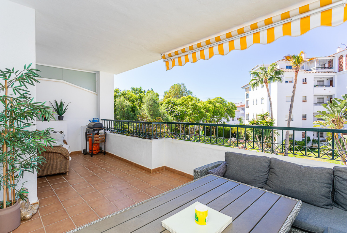 Set within a secure gated community, residents enjoy access to three swimming pools, a padel tennis court, and beautifully maintained subtropical gardens. The apartment also includes private underground parking, with additional guest parking available inside the grounds.