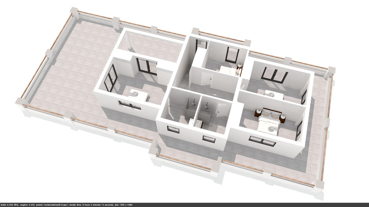 On the upper floor, connected to the large overflow, are 4 spacious bedrooms and 2 generous bathrooms with the possibility of a third bathroom. All rooms have a balcony, with a view of the mountains or the sea. Also from the large roof terrace you can enjoy the beautiful views!