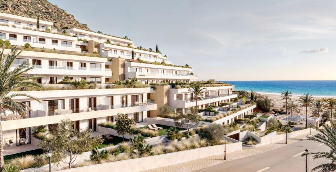 This modern project features 125 residences with options for two bedrooms, crafted with a contemporary approach that respects the natural surroundings. Enjoy the expansive terraces overlooking the sea, stunning penthouses with solariums, and ground floors with private gardens, some even offering the possibility of a private pool.
